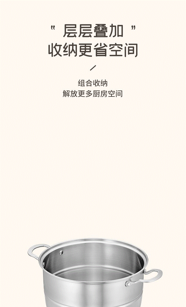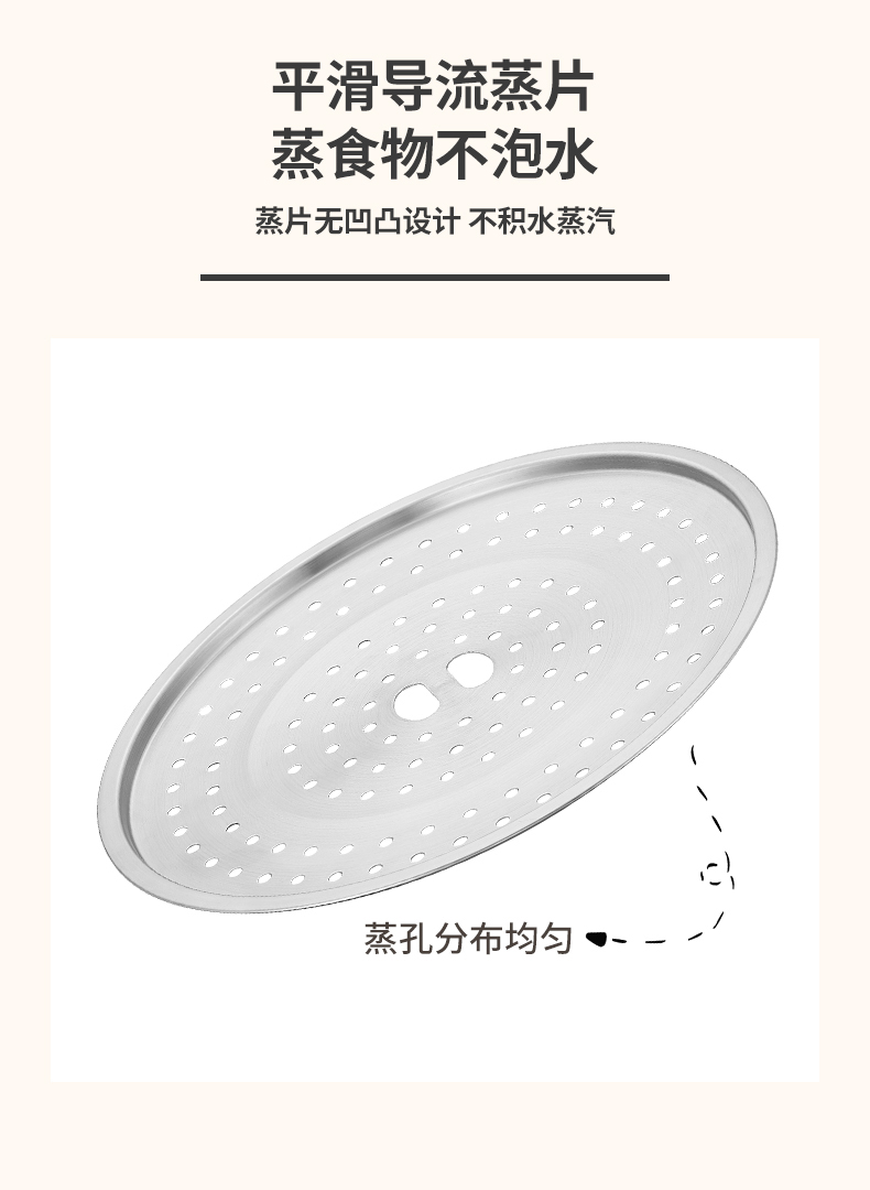 ② 加厚蒸笼,蒸孔均匀分布锅沿,蒸片循环倒流设计锁住食物的原汁原味,