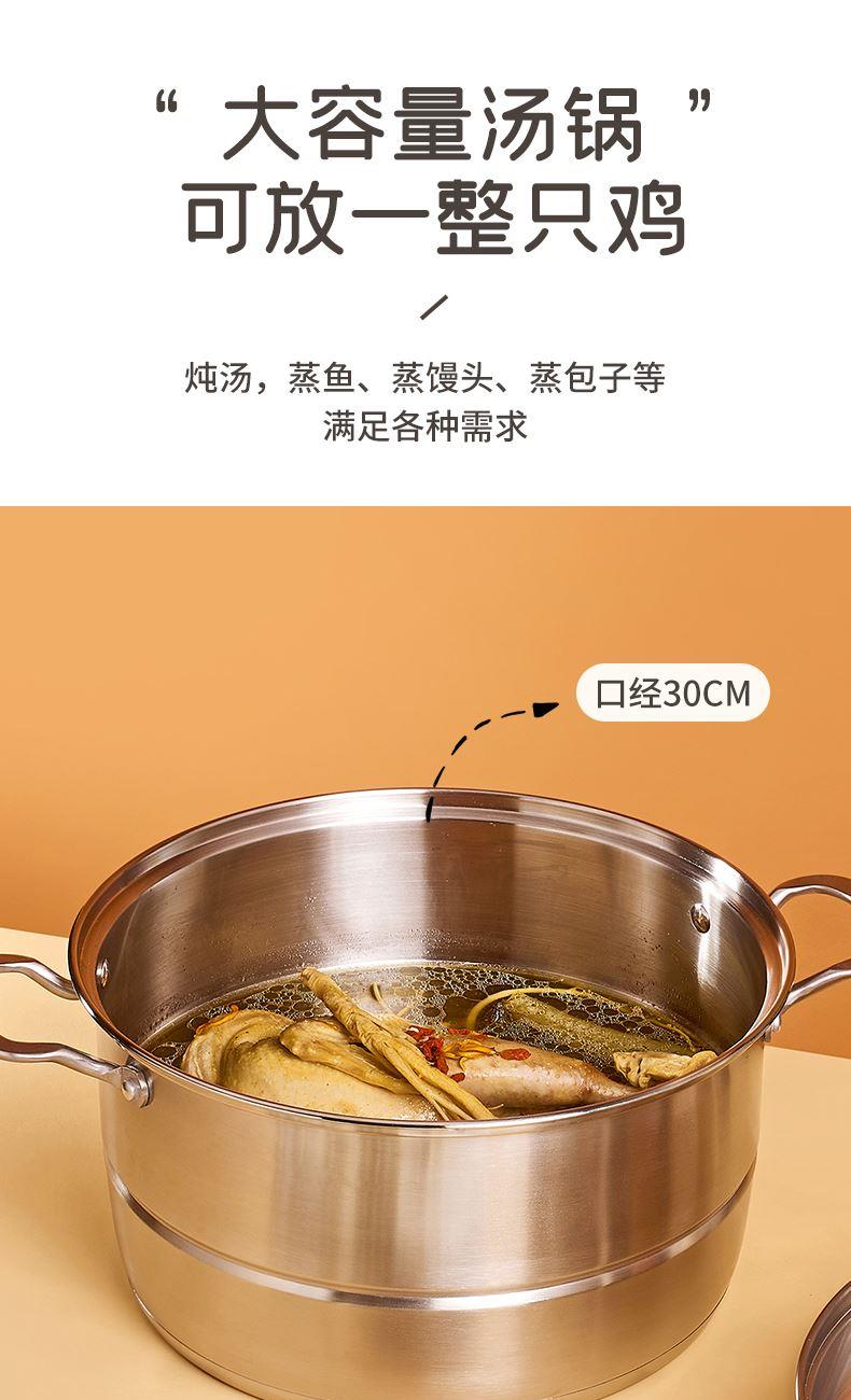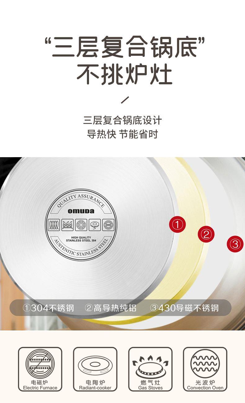 ① 采用奥氏体不锈钢304#(06cr19ni10)材质精制而成,强效聚热,耐腐蚀、无涂层、安全无毒 ,老人小孩孕妇可放心食用, 坚固耐用加厚钢铝钢三层复合锅底,导热快速均匀,节能省时。