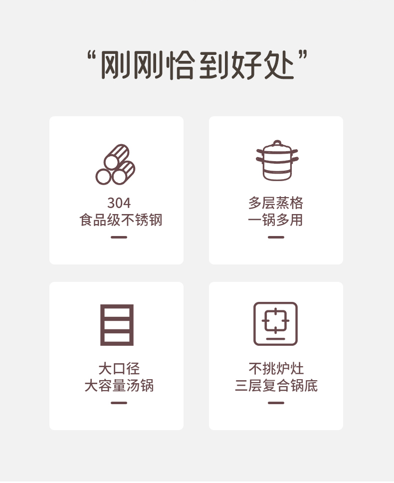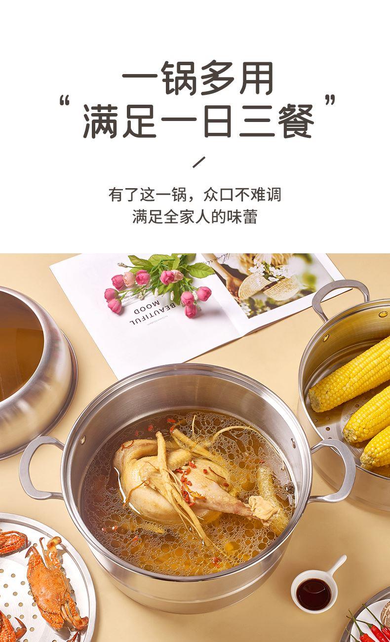 ⑦ 一锅多用容量大,蒸、煮、炖、焖,涮等功能方便操作简单,炉具兼容。