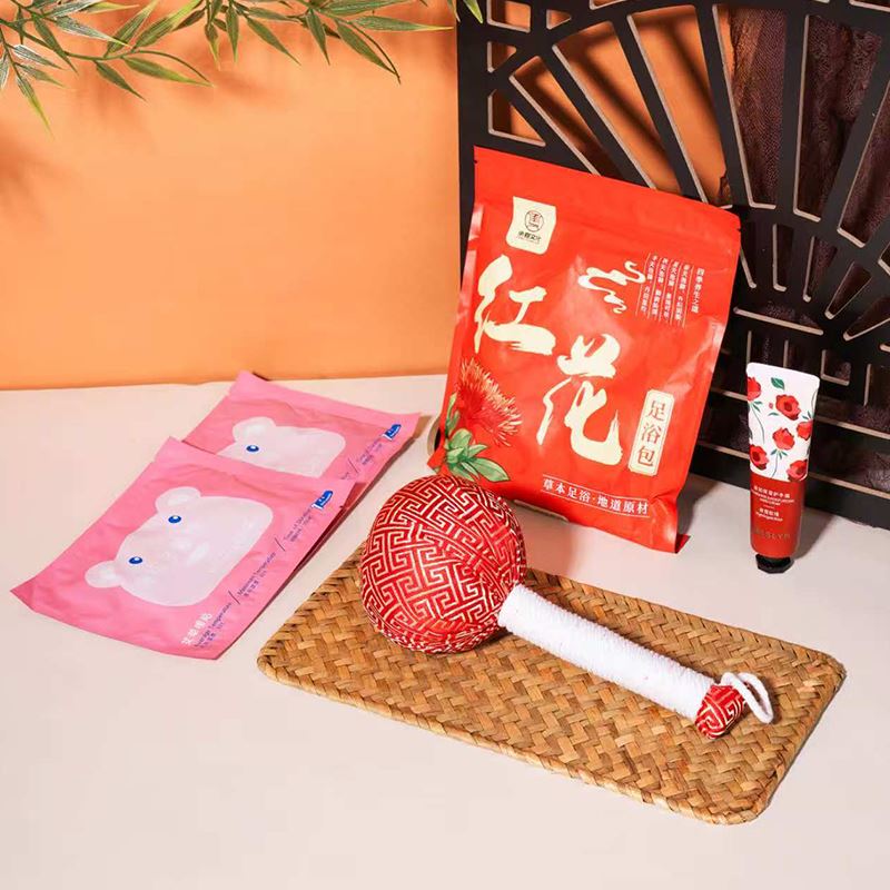 3、红色金丝缎面艾草锤,喜庆吉祥,锤出安康;红花足浴包,祛湿排寒全家安康;小熊艾草暖贴,温暖呵护全身可用;夜莺玫瑰护手霜,呵护双手清香滋润。