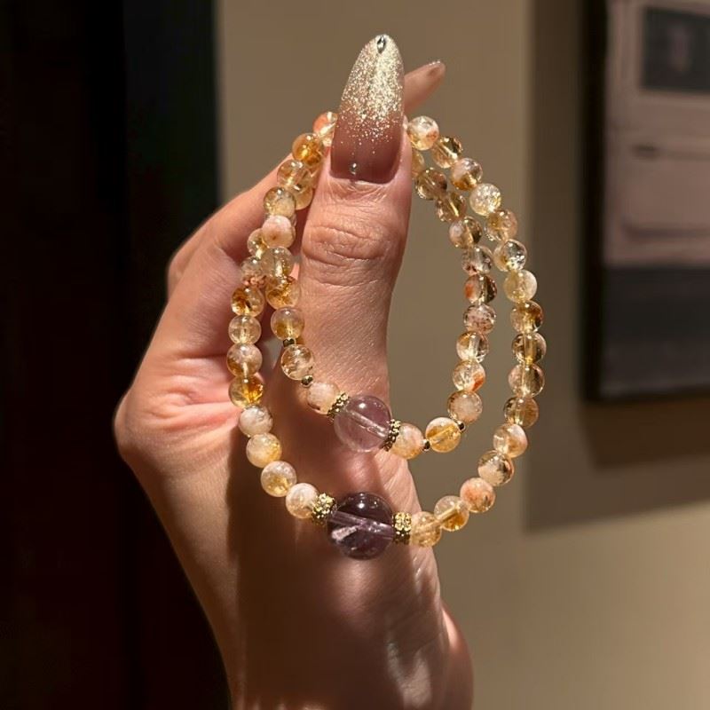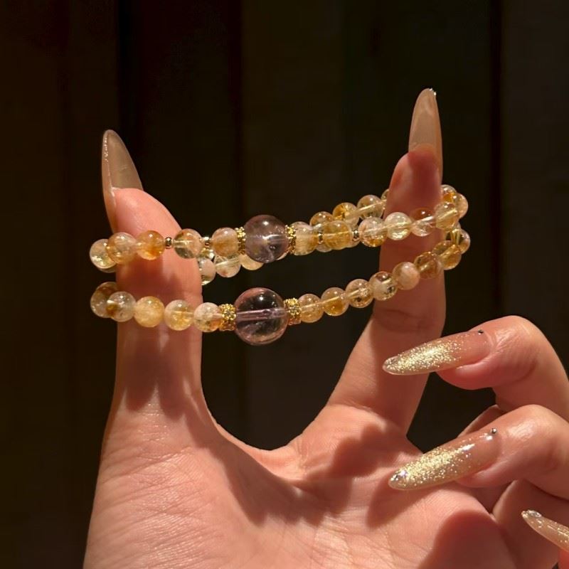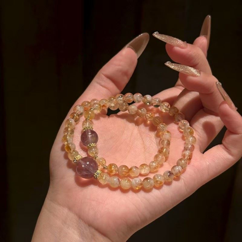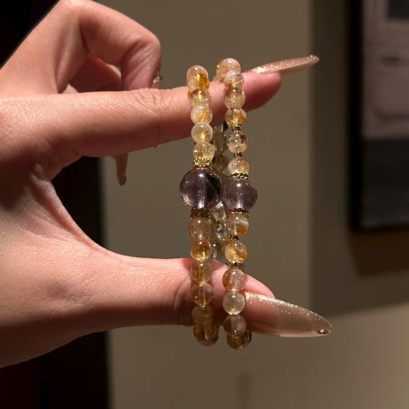 材质:黄水晶+紫水晶 规格:黄水晶6m,紫水晶10m 包装:悬浮盒+手提袋 左手招财,右手开运,双倍能量戴出精致感 黄水晶|招财·旺事业·增强自信 紫水晶|助学业智慧·改善人际·守护贵人缘 双链能量叠加,平衡财运与灵性,寓意吉祥,有心意更有灵力 温馨提示 天然水晶每颗纹路独特,图片为实拍效果,可能存在细微色差属正常现象哦~
