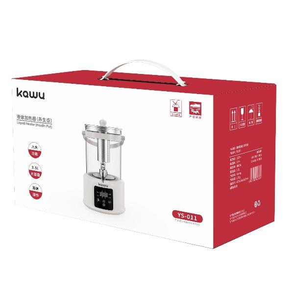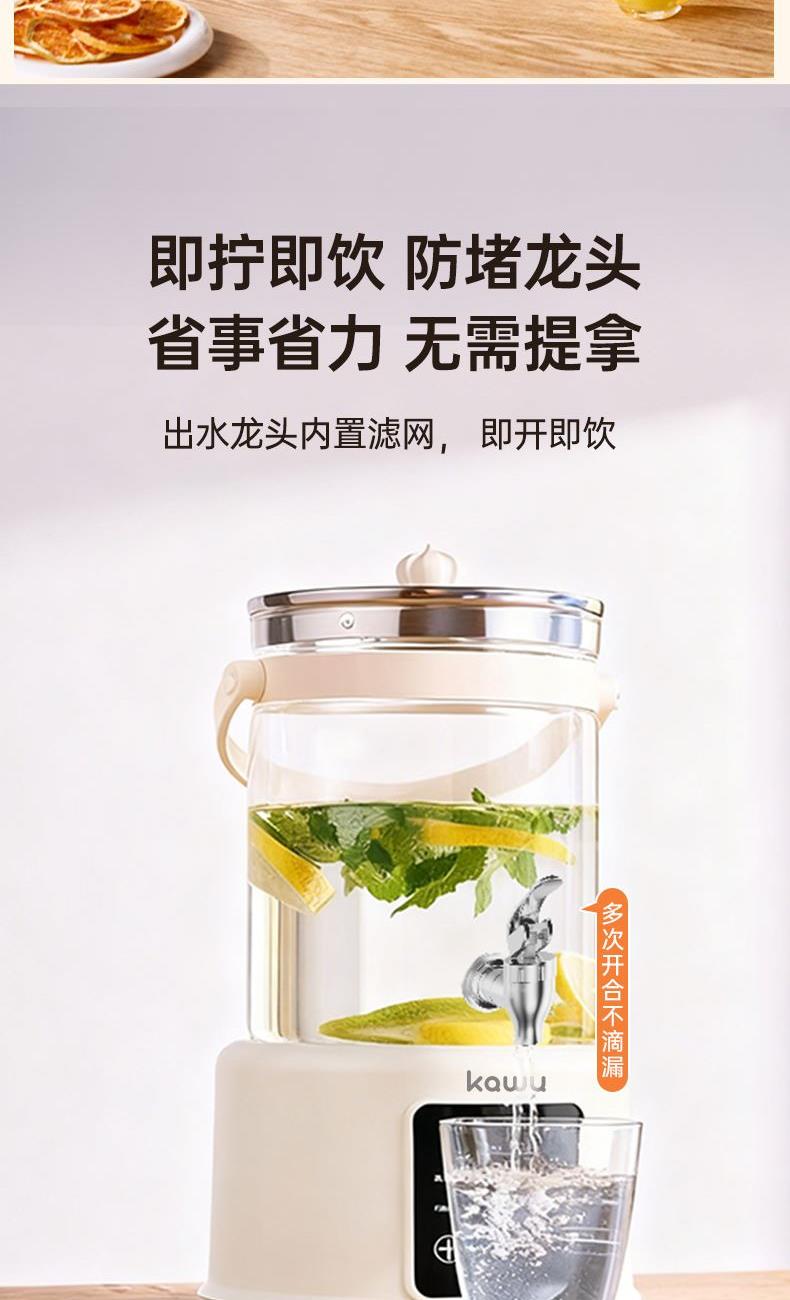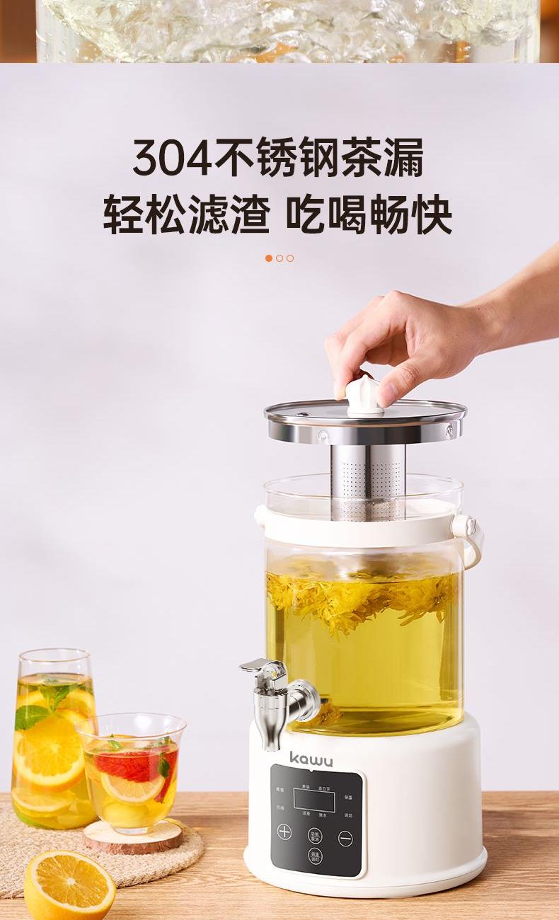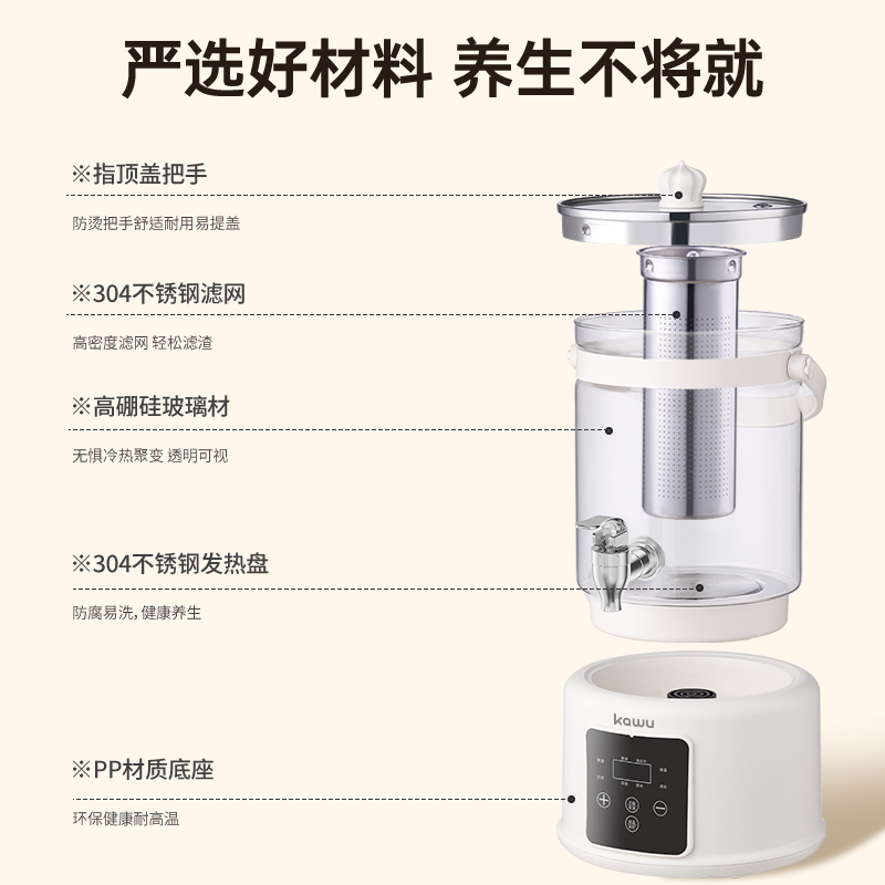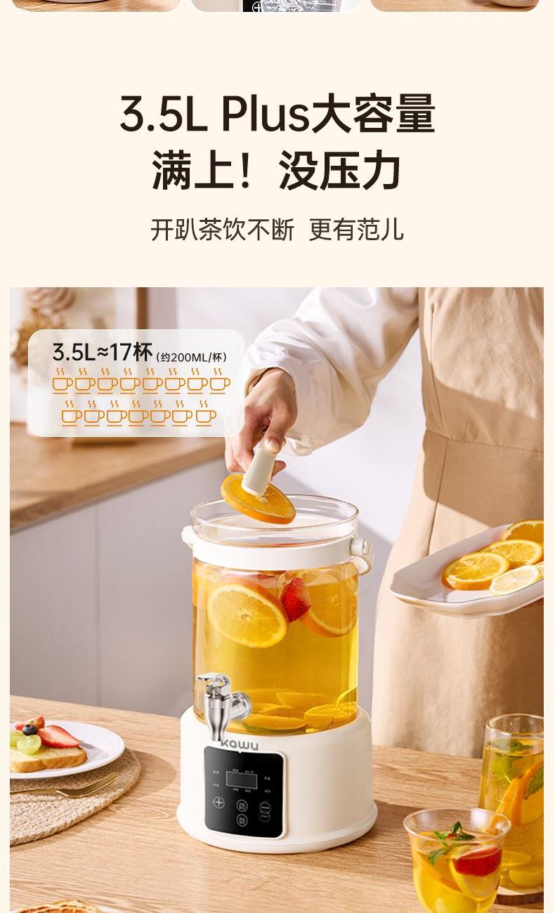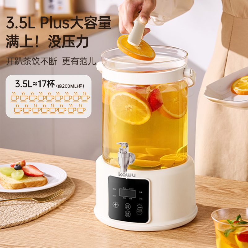 额定功率:1000W 额定电源:220V~50Hz 产品尺寸:250*370mm 包装尺寸:427x256x262mm 产品容量:3.5L 单台净重:1.64KG 单台毛重:2.2KG 1、水箱分体式设计拿取方便轻松换水 2、1000W大功率快速煮沸不久等 3、8大功能大屏幕触控操作简单方便 4、3.5L大容量多人使用也不怕 5、自带茶漏可蒸汽煮茶享受茶气芬芳 6、37-95度多段控温满足不同温度需求 7、300S提壶记忆 自动记忆提壶前水温 放回无需重设