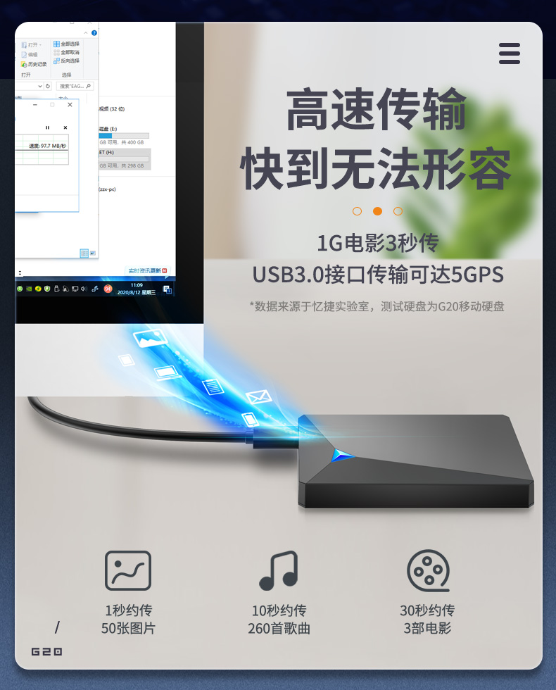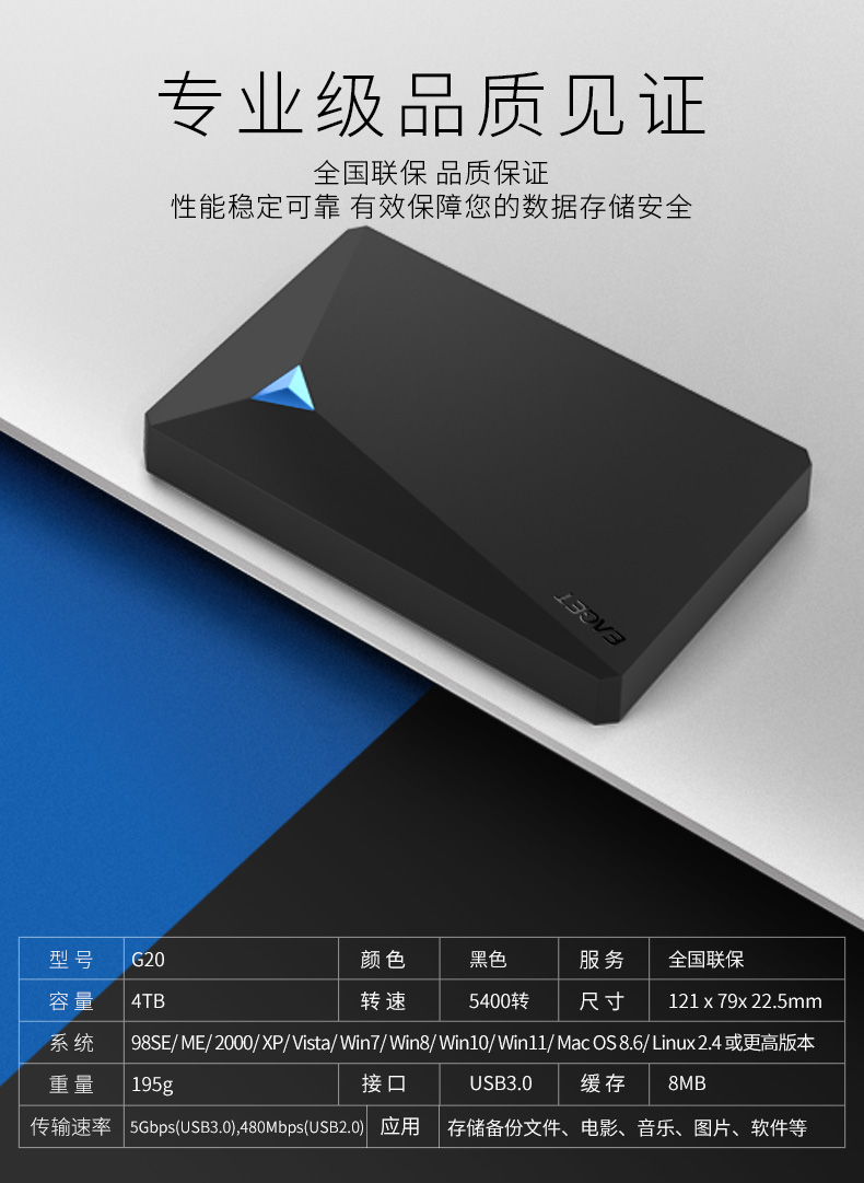 (EAGET)忆捷G20移动机械硬盘时尚款4TB