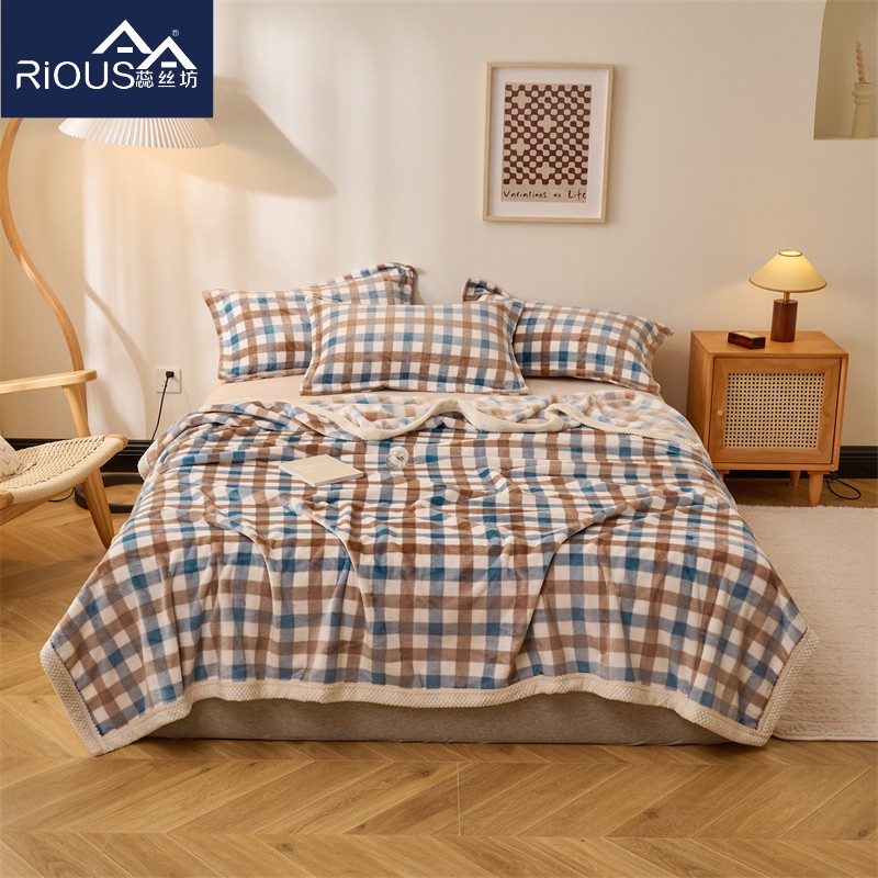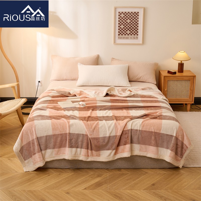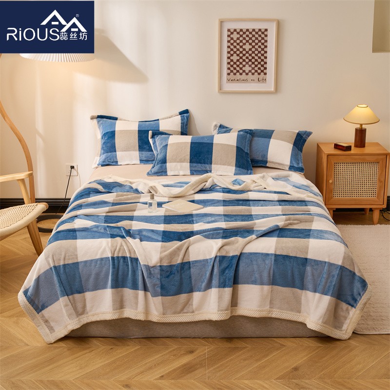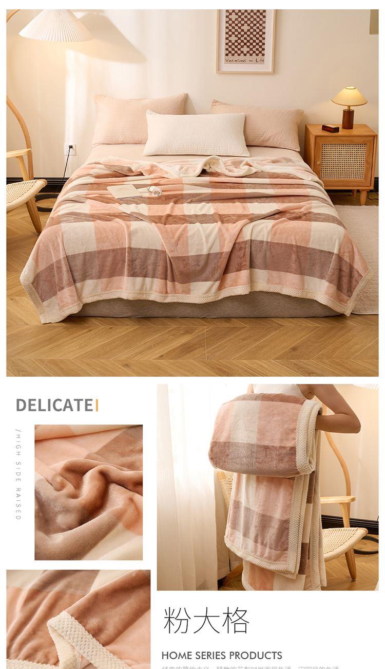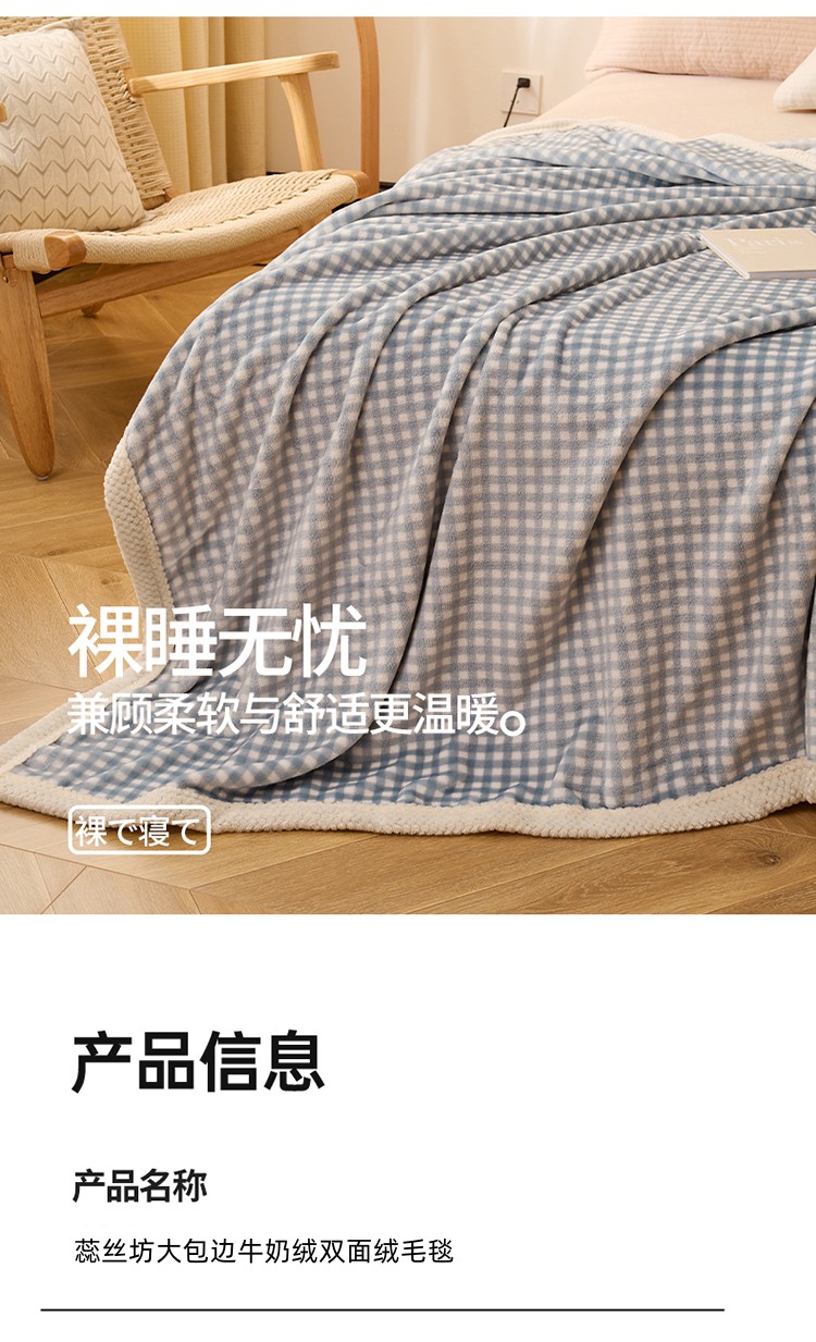 蕊丝坊家纺大包边牛奶绒双面绒毛毯150*200cm