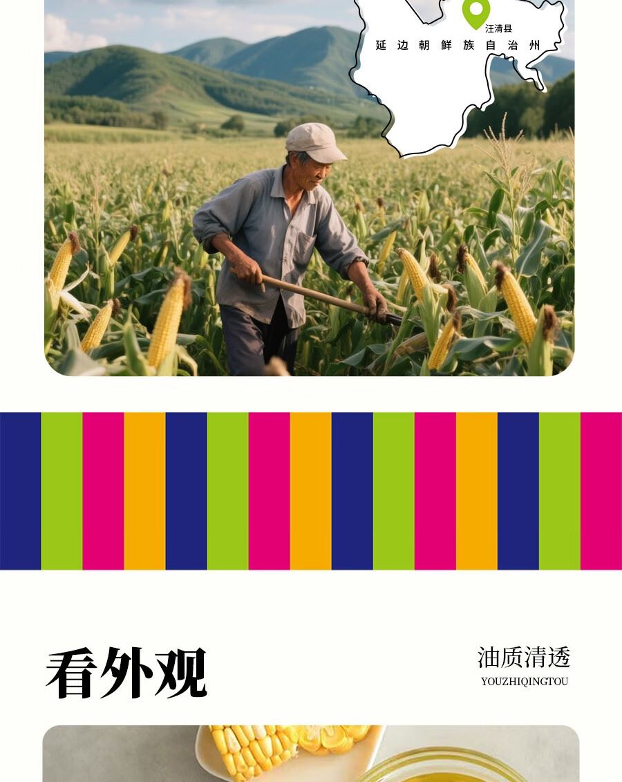吉潮瑞鲜压榨一级玉米油(非转基)1.8L 配料:玉米油 等级:一级 净含量:1.8L 产地:吉林省汪清县 保质期:18个月 贮存方法:置于阴凉通风干燥处