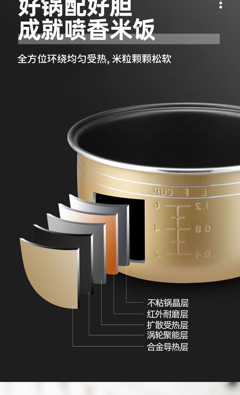 内胆材质:铝合金 蒸屉材质:PP(聚丙烯) 认证型号:FBQF-3AL 容量:3L 额定功率:500W 内胆形状:球釜形 适用人数:3-4人 加热方式:底盘