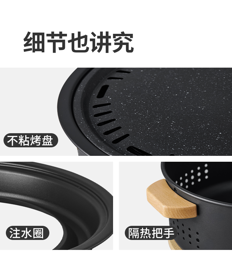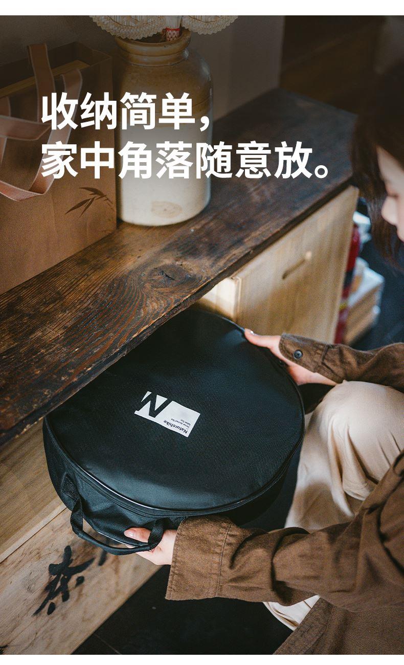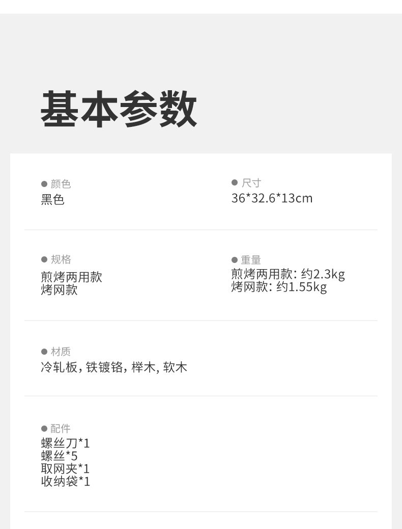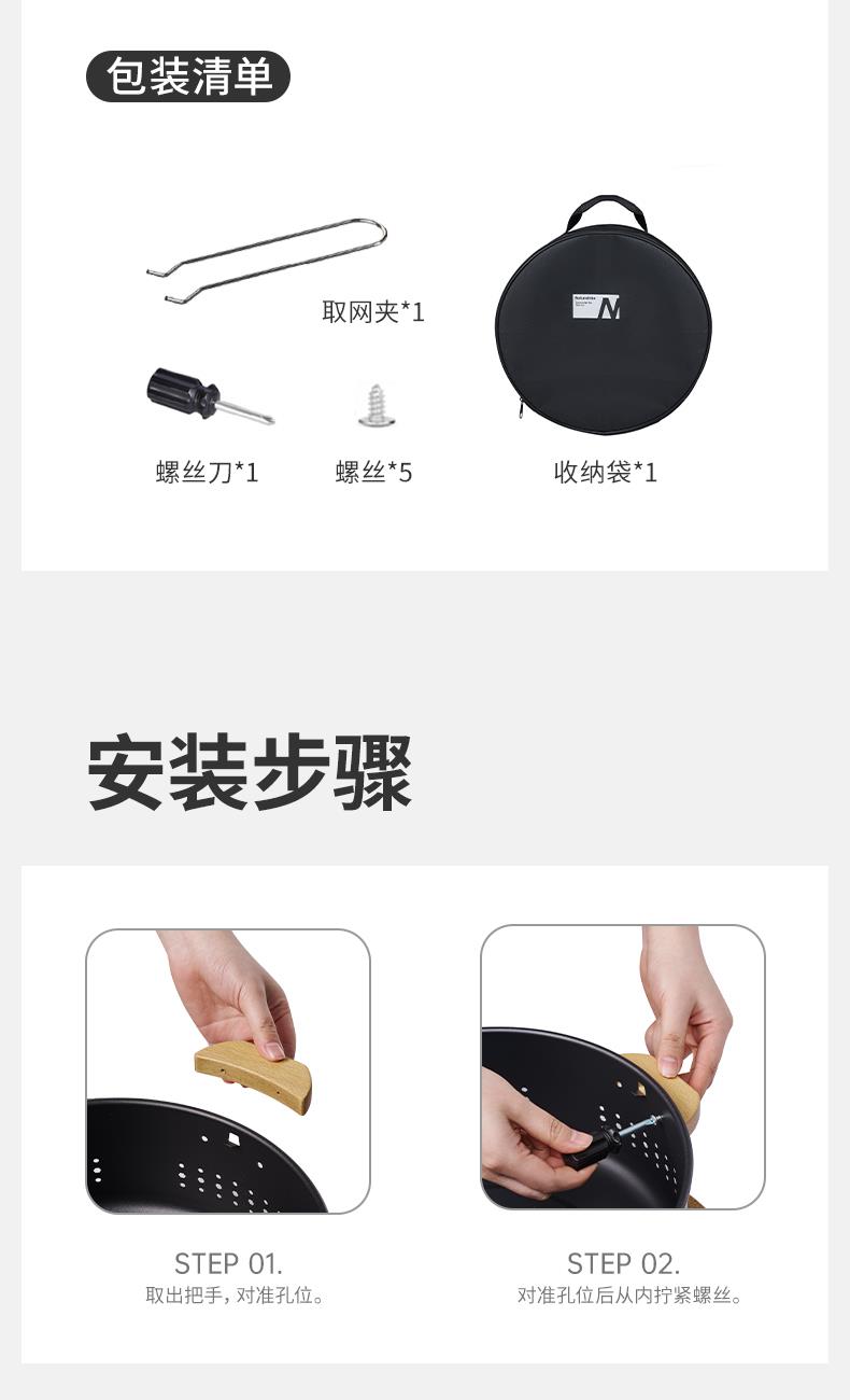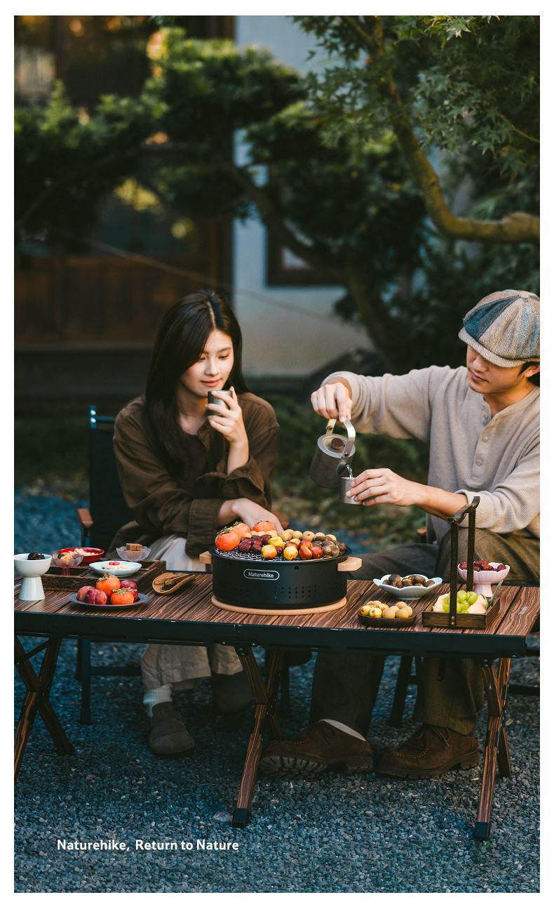 Naturehike CNK2550CF010 墨烟桌面圆形围炉 尺寸:36*32.6*13cm重量:约2.3kg 颜色:黑色 材质:冷轧板,铁镀铬,榉木,软木 产品特点: 稳握不烫手实木提耳安全隔热 水油分离炭盆有效减少油烟 食品级烤网耐用抗锈易清洁 分体式设计,拆卸友好易清洗 600°耐高温炭盆,稳定承热才更耐烧 收纳简单一拎即走