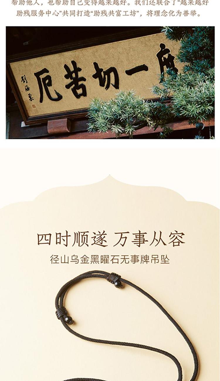 防护,百无禁忌: 黑曜石从材质上提供强大的辟邪和能量防护盾,而平安扣从形态上承担 “锁住平安,隔绝厄运” 的使命。两者结合,寓意着为佩戴者构建一个极其坚固的能量屏障,尤其适合感觉自身能量场较弱、需要强力保护的人。 先破后立,净中得静: 黑曜石先 “破”——破除邪祟、吸收负能量;无事牌后 “立” ——立下平安、宁静的愿景。黑曜石净化你的能量场后,无事牌的“空”和“无”才能更好地带来内心的宁静与祥和。寓意着 “净化身心,方得自在”