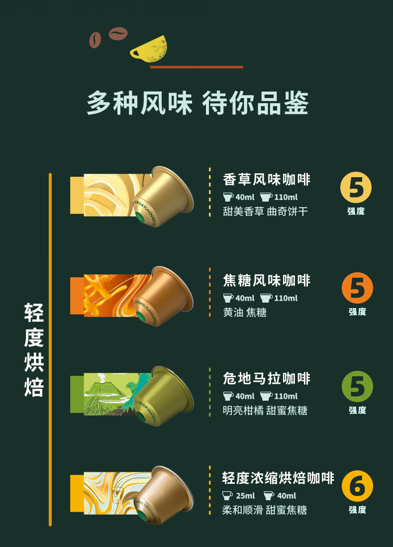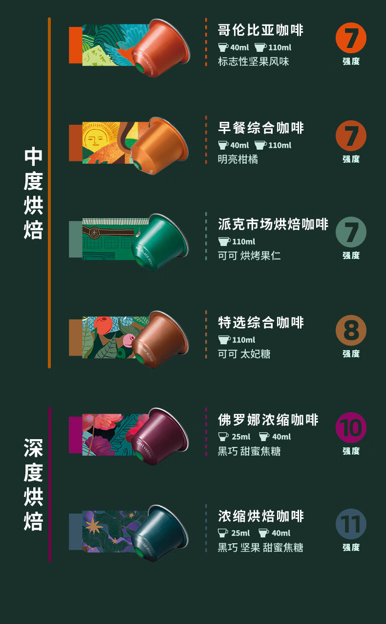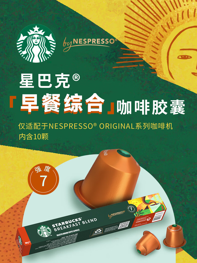 星巴克胶囊咖啡早餐综合10颗适配Nespresso胶囊机
