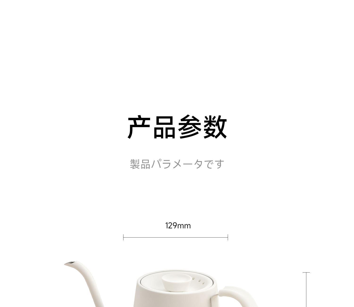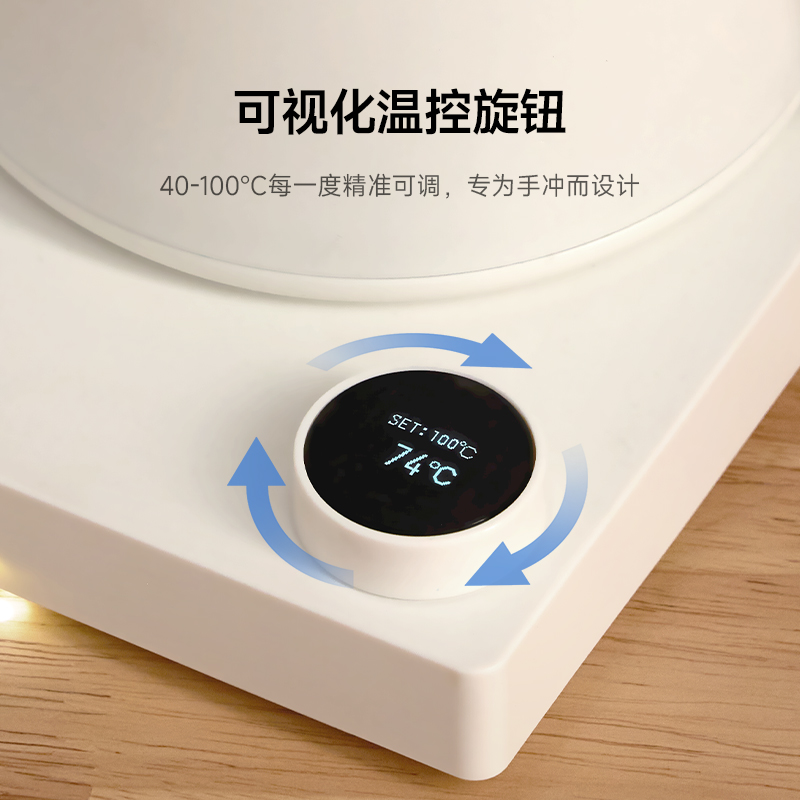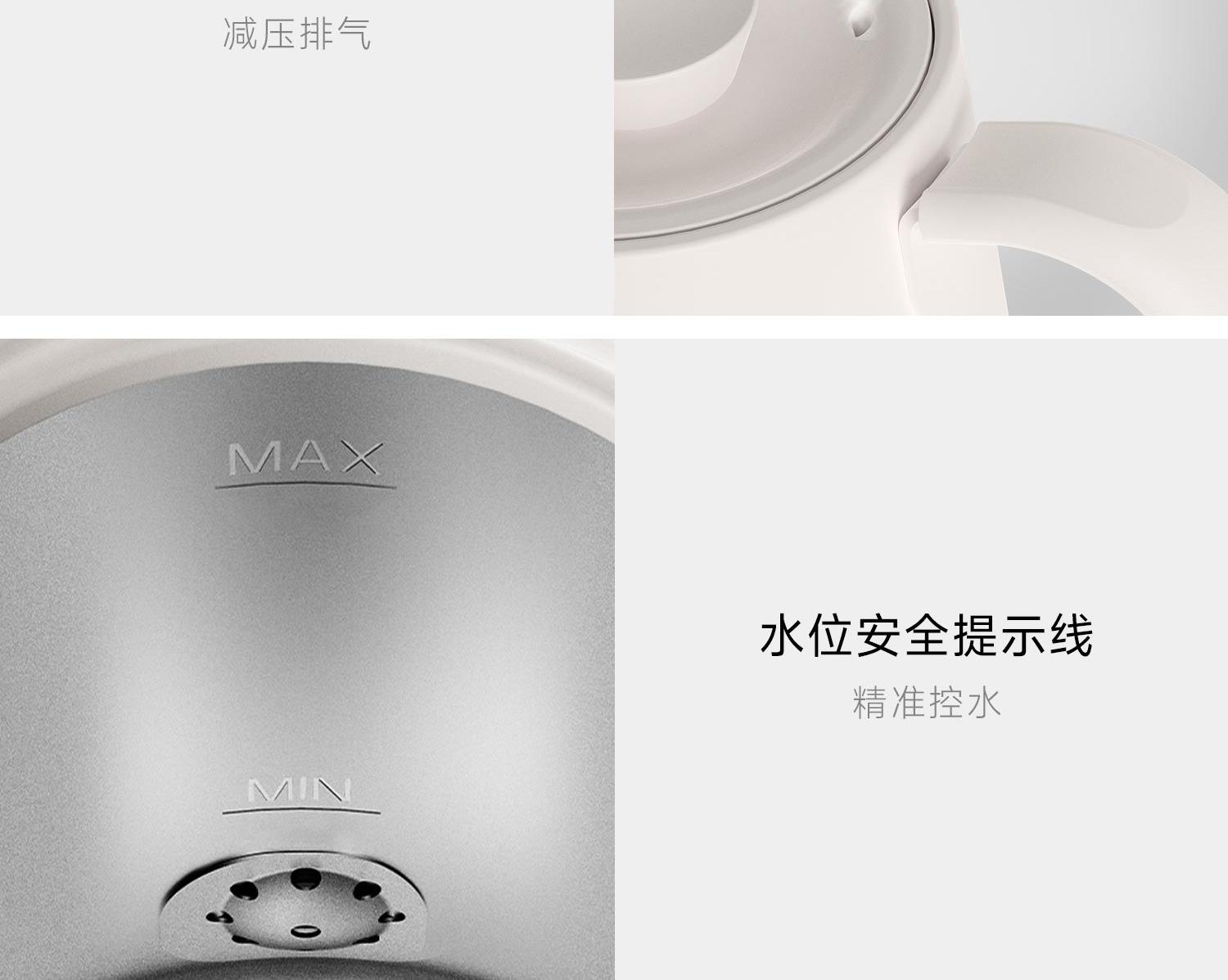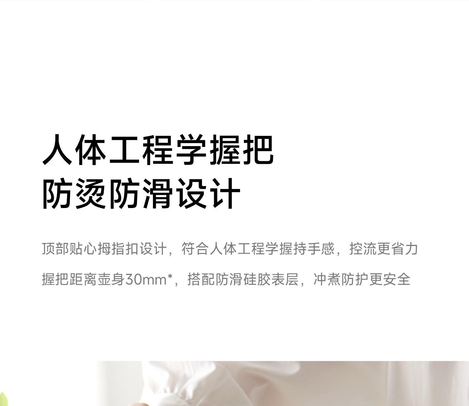 产品型号:CKY-J020 产品功率:1200W 容量:0.9L 温控:40-100℃ 电压 :220V STRIX防干烧温控器 误操作干烧时自动断电,高温熔断保护 大功率高效沸腾,120s快速煮水 Oled旋钮显示屏,控温 硅胶把手正面、反面两种磨砂体验,手感与防滑皆具备 鹅颈出水口断水自如,控水稳定