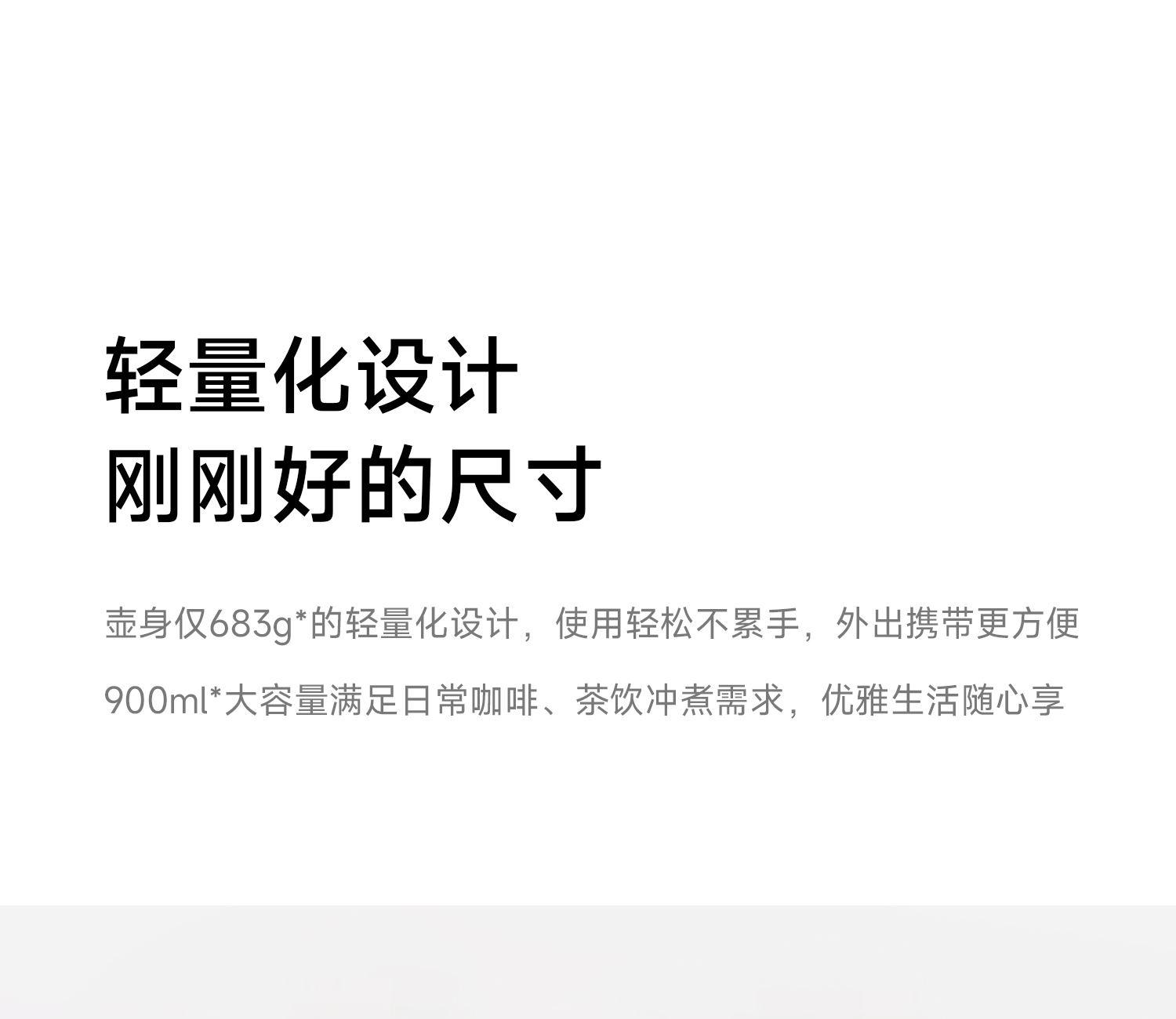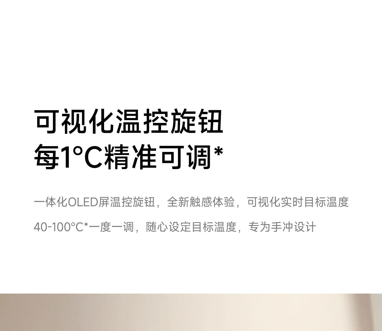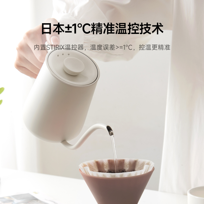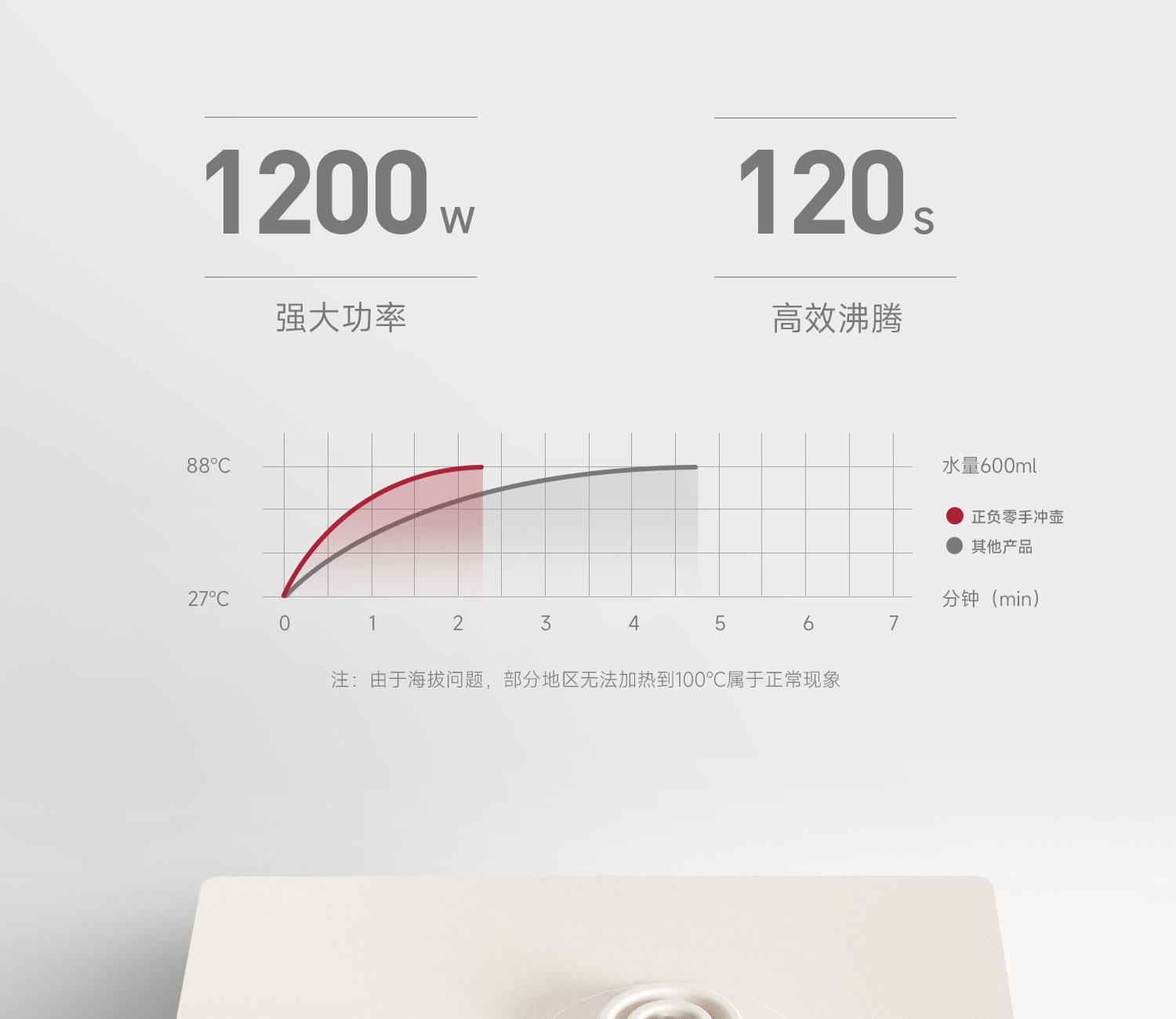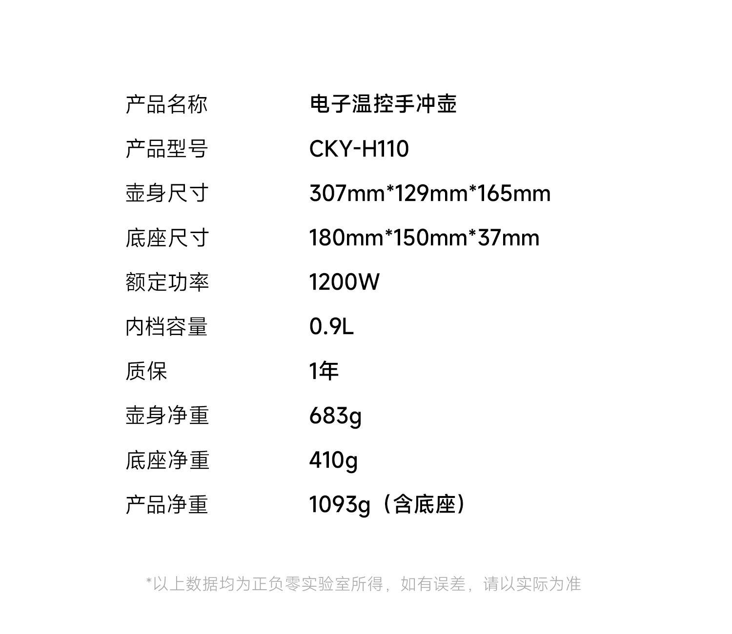 产品型号:CKY-J020 产品功率:1200W 容量:0.9L 温控:40-100℃ 电压 :220V STRIX防干烧温控器 误操作干烧时自动断电,高温熔断保护 大功率高效沸腾,120s快速煮水 Oled旋钮显示屏,控温 硅胶把手正面、反面两种磨砂体验,手感与防滑皆具备 鹅颈出水口断水自如,控水稳定