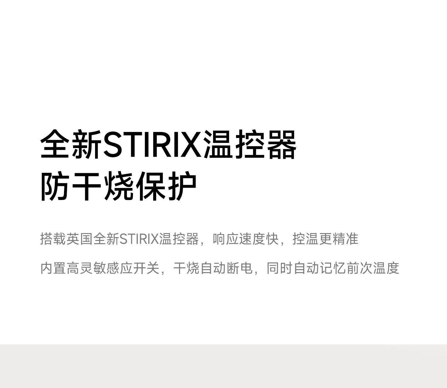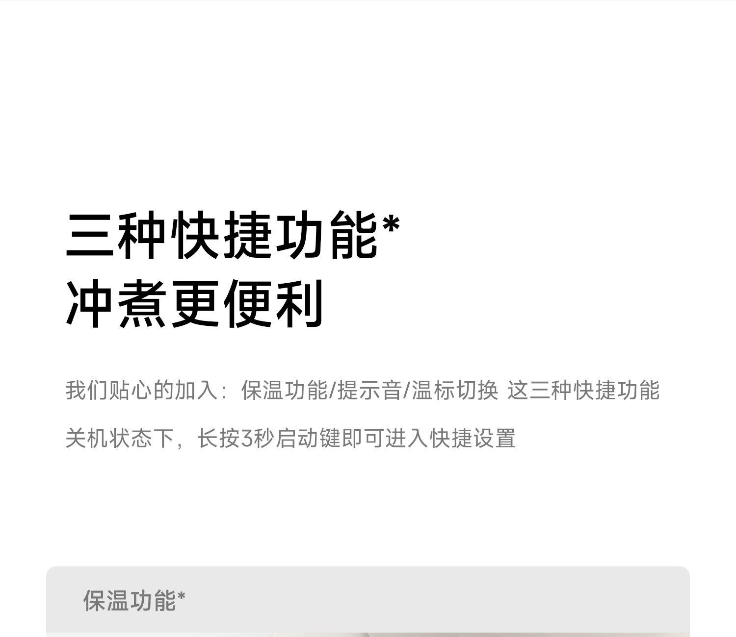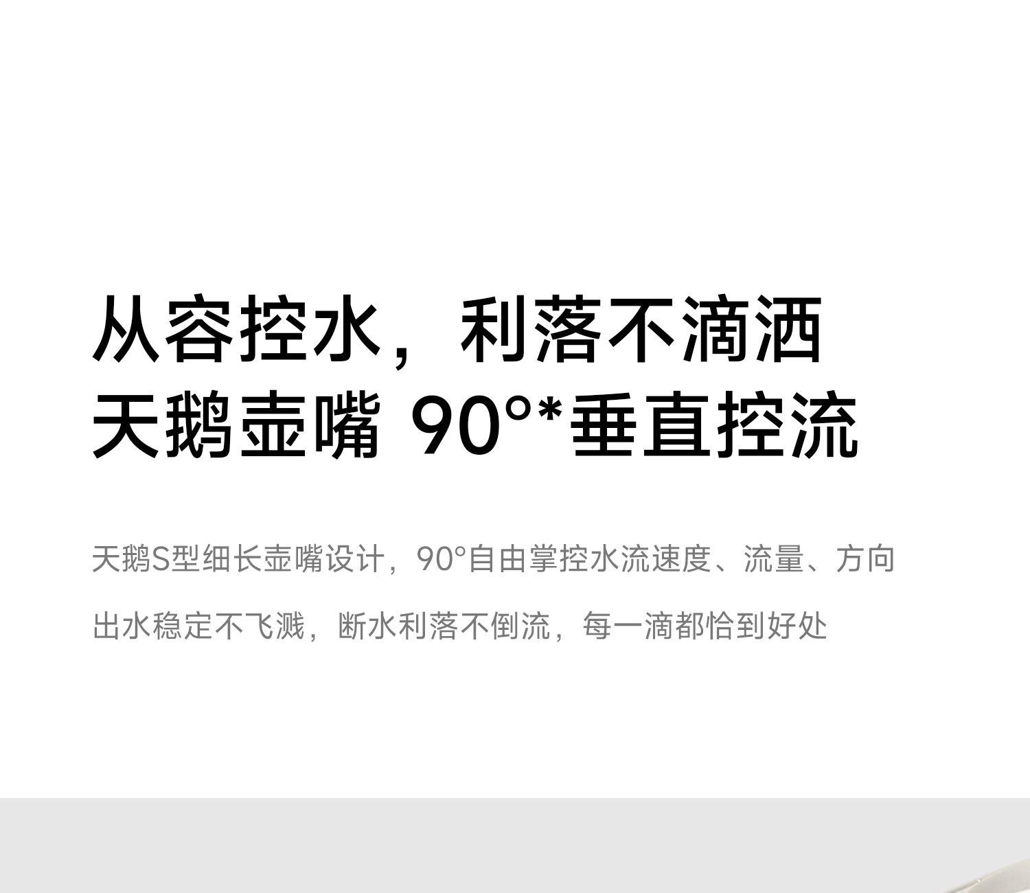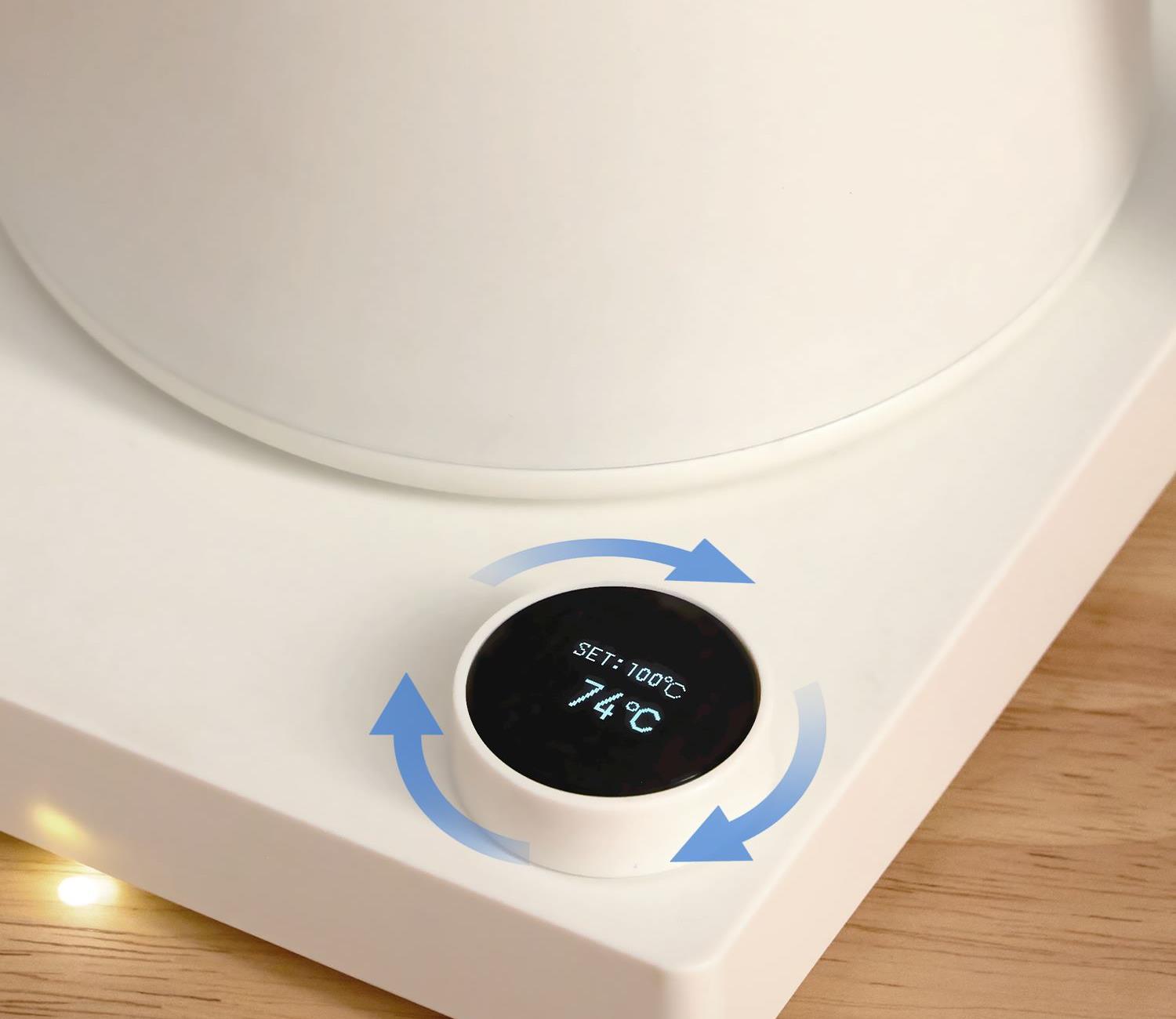 产品型号:CKY-J020 产品功率:1200W 容量:0.9L 温控:40-100℃ 电压 :220V STRIX防干烧温控器 误操作干烧时自动断电,高温熔断保护 大功率高效沸腾,120s快速煮水 Oled旋钮显示屏,控温 硅胶把手正面、反面两种磨砂体验,手感与防滑皆具备 鹅颈出水口断水自如,控水稳定
