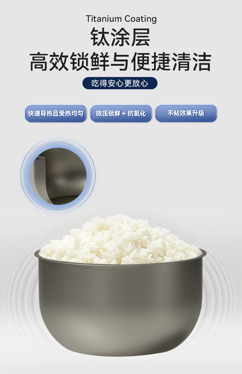 喷钛内胆材质升级,具备更强的耐用性、健康性和导热性能