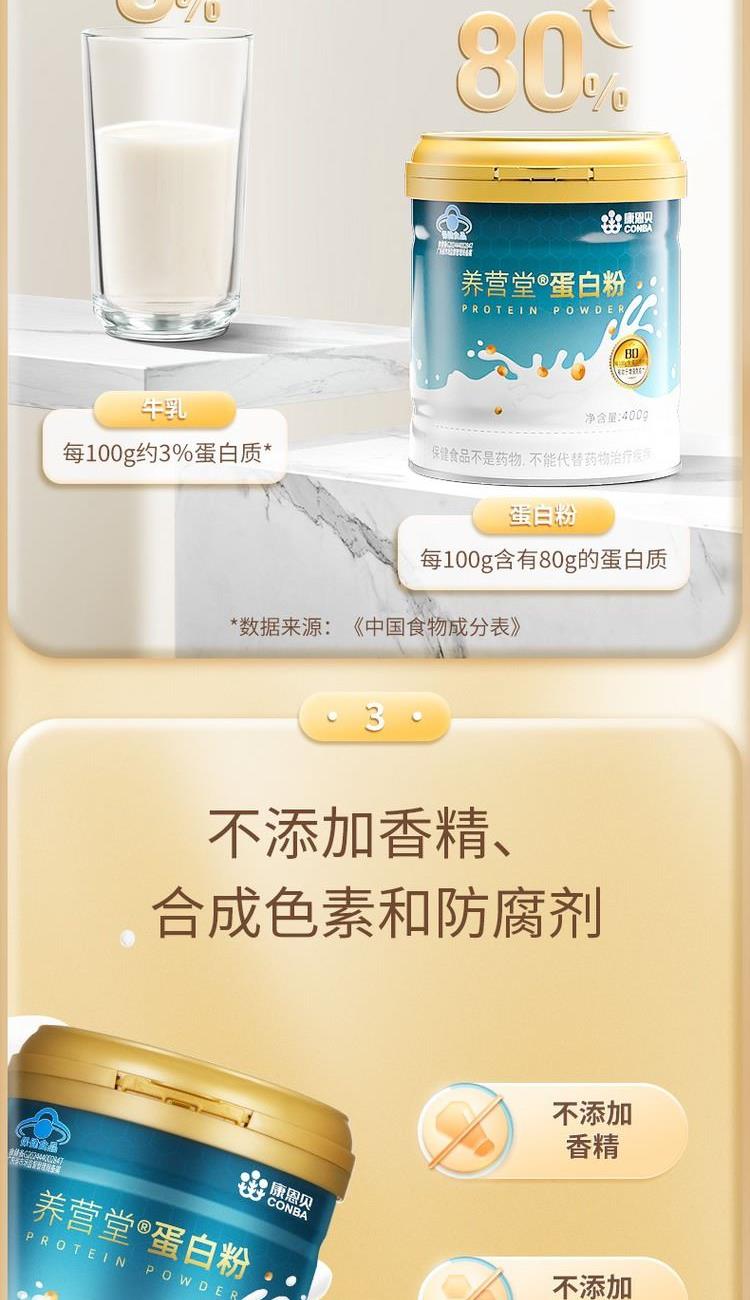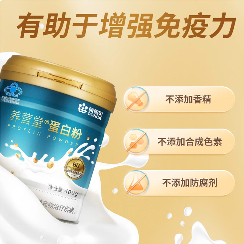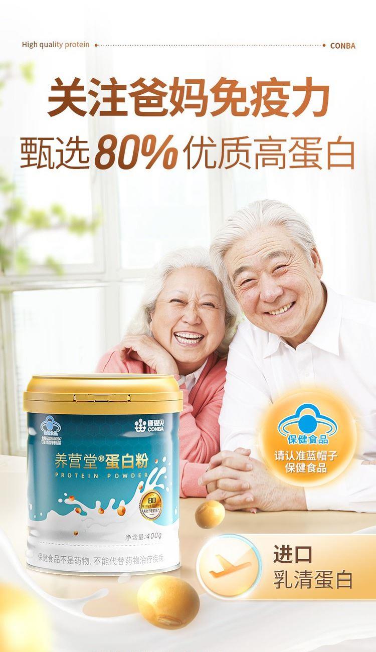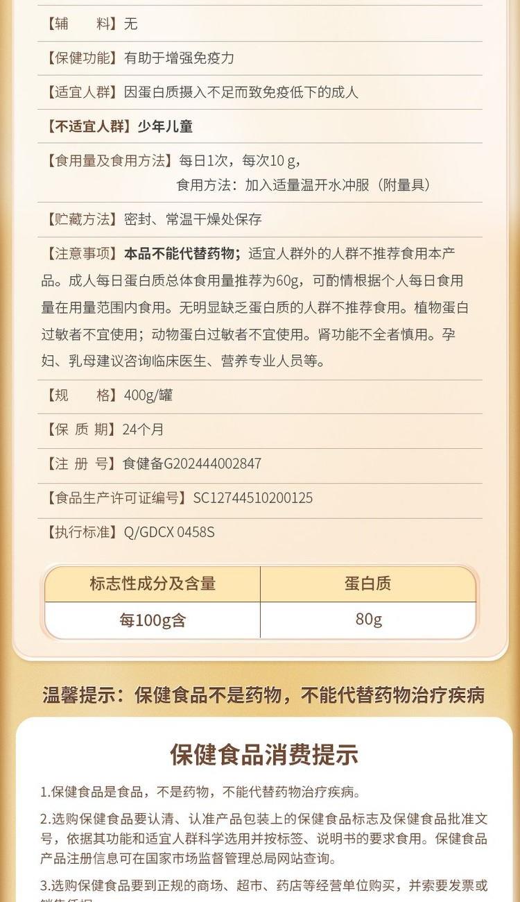 400g/罐*1(80%) 新西兰进口乳清蛋白、大豆分离蛋白 蛋白质含量高达80% 0添加辅料/色素/香精/防腐剂 粉质细腻 易冲泡 助力中老年人吸收