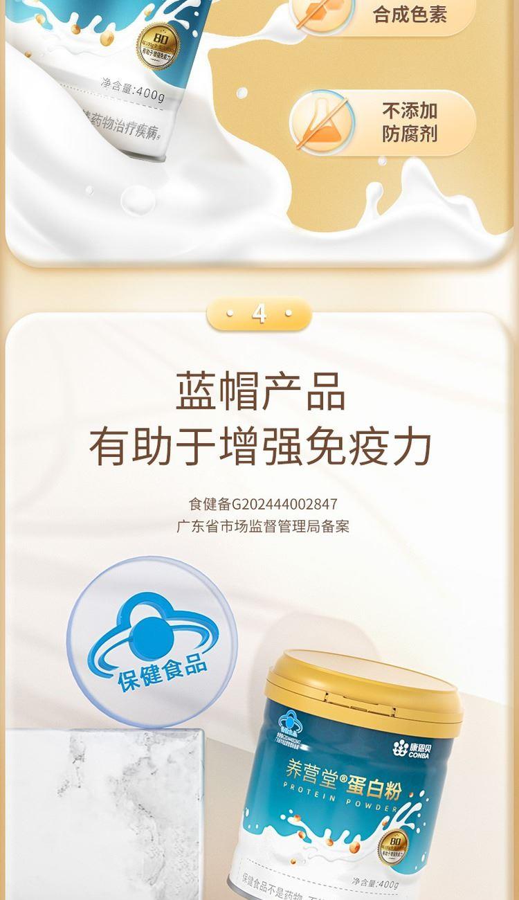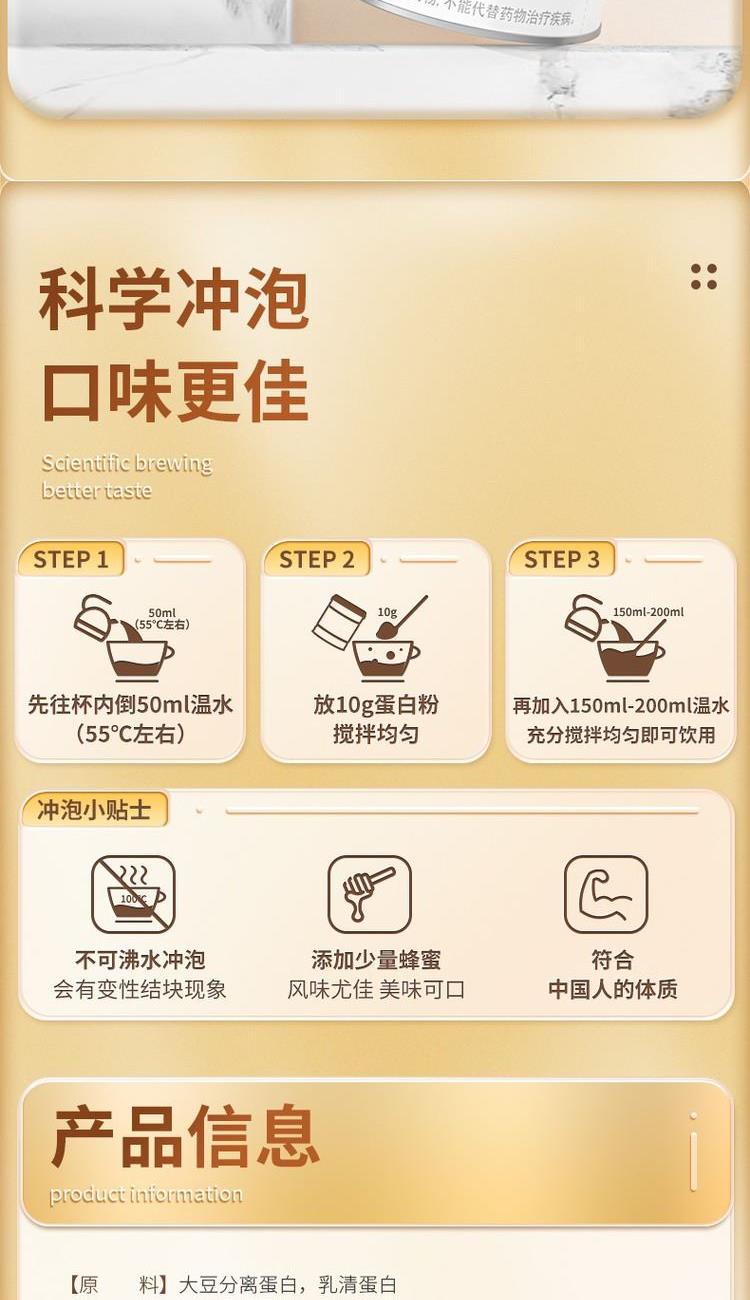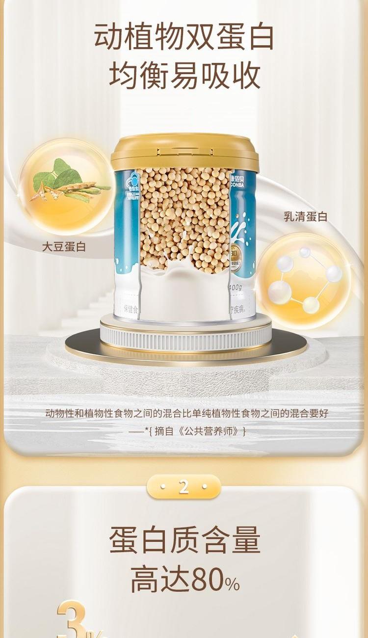400g/罐*1(80%) 新西兰进口乳清蛋白、大豆分离蛋白 蛋白质含量高达80% 0添加辅料/色素/香精/防腐剂 粉质细腻 易冲泡 助力中老年人吸收