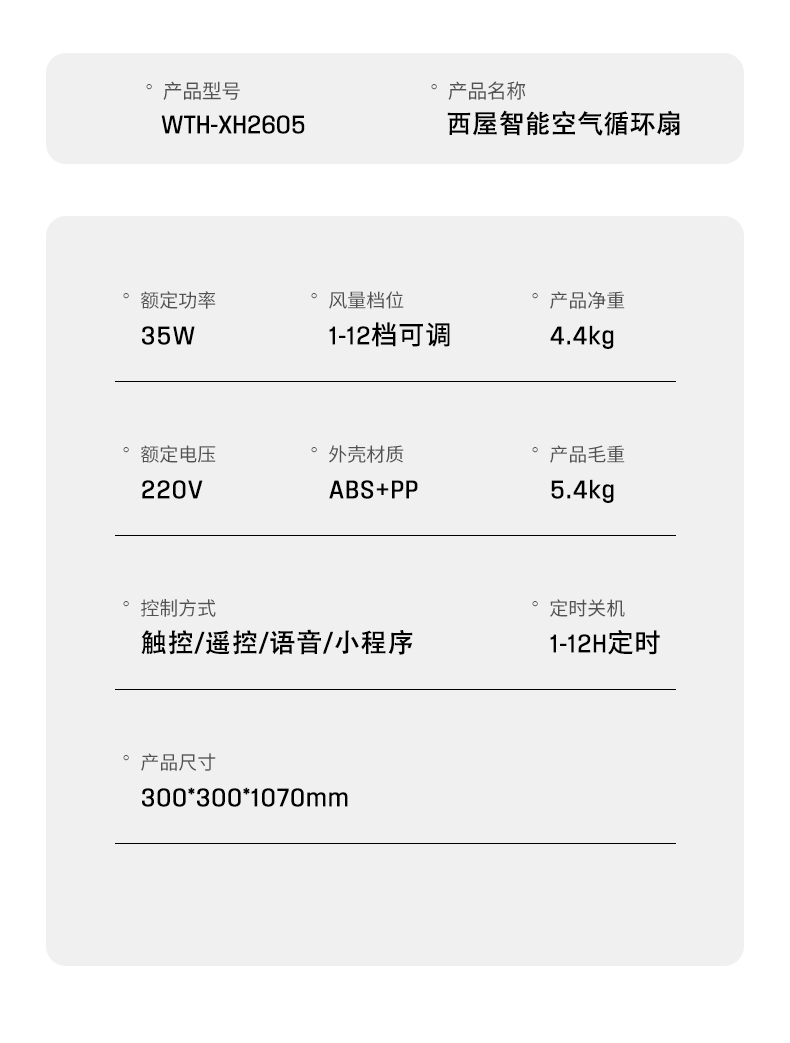 西屋智能循环风扇WTH-XH2605 西屋智能循环风扇WTH-XH2605