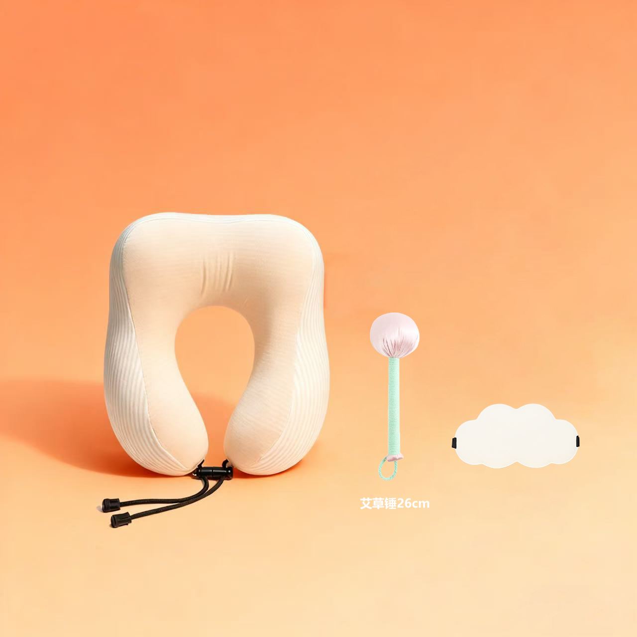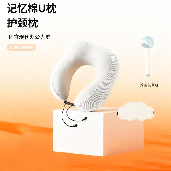 货号 :Z2026 材质 :U型枕:短毛绒 眼罩:聚酯纤维 规格 :U型枕:30*25*13cm (记忆棉) 组合:枕头眼罩艾草锤