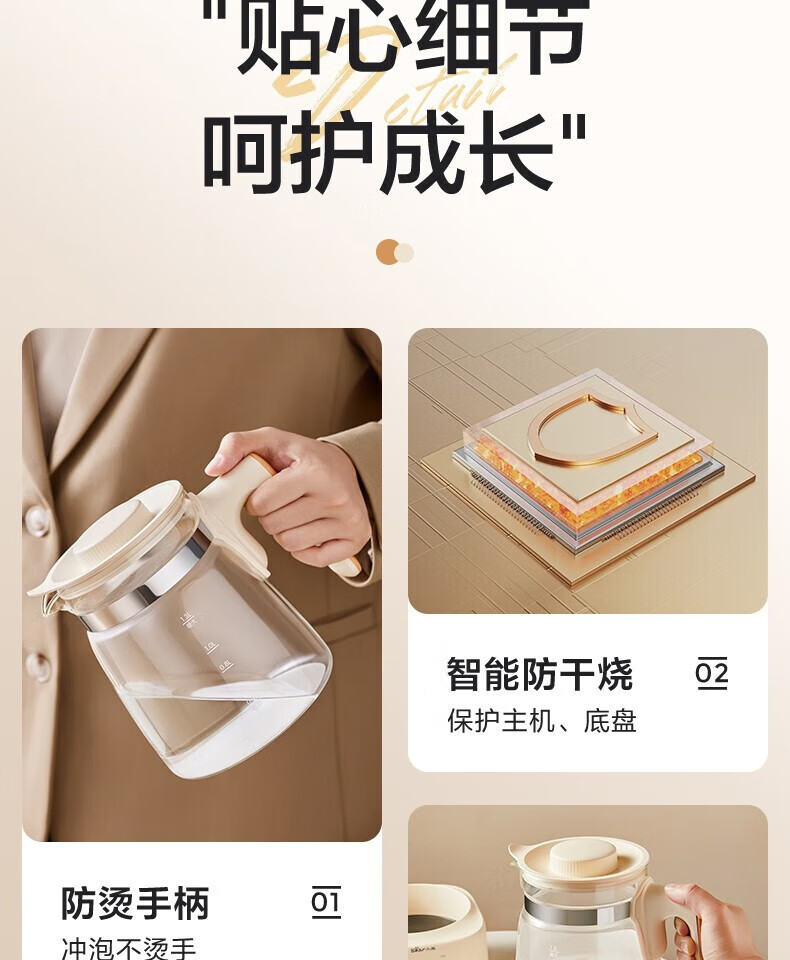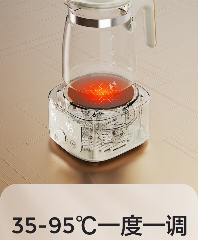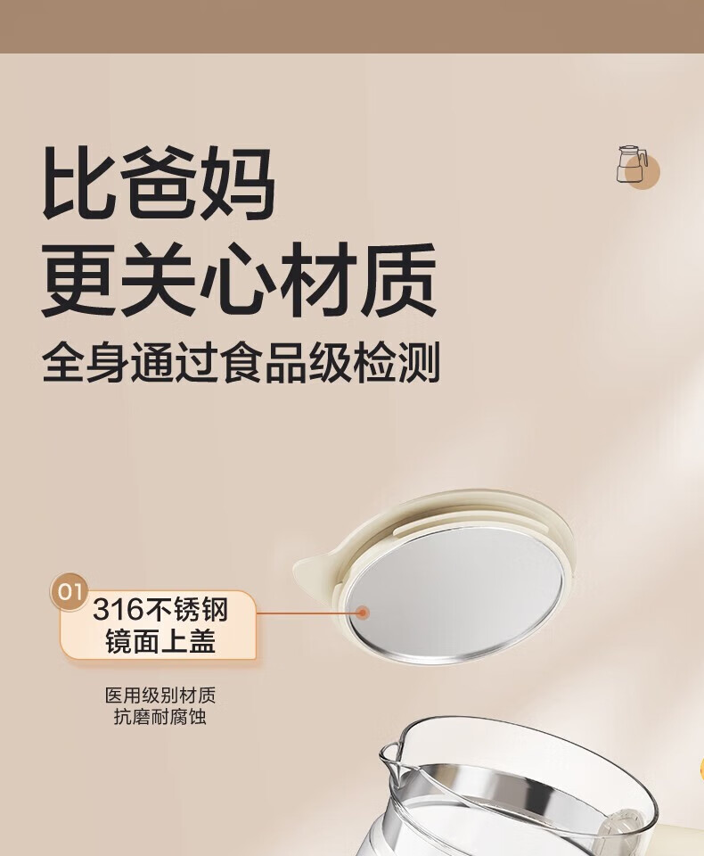 高硼硅玻璃壶身,316 不锈钢发热盘 三大调温模式 创新Scrub-T工艺 0涂层高温不发黄