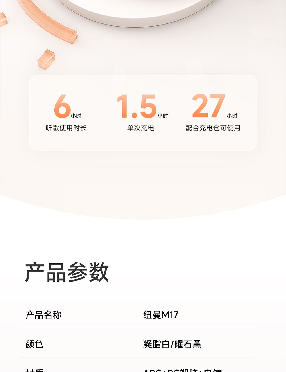 · 续航持久,连续通话/音乐时间满足日常使用频繁人群