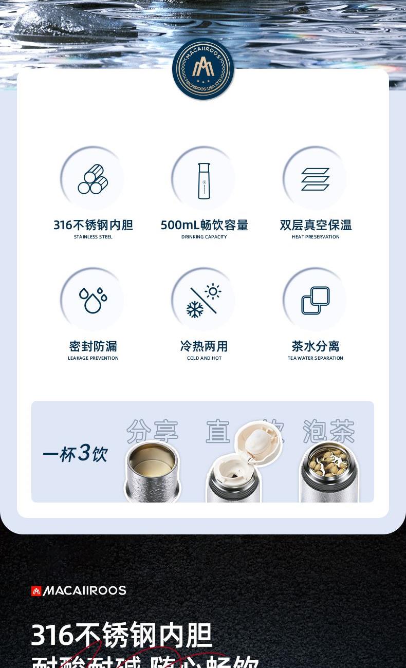 美国迈卡罗不锈钢真空保温杯MC-6510BW