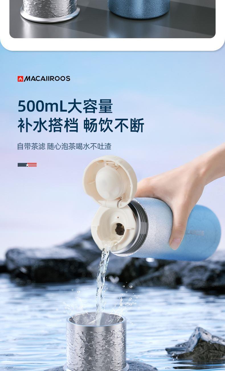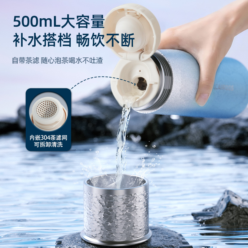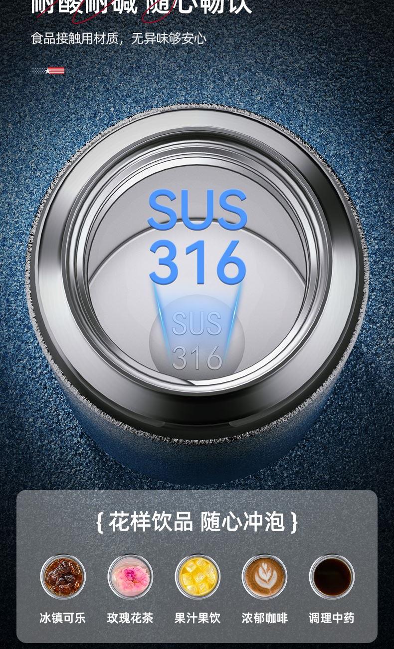 规 格:500ml 材 质:316不锈钢 产品净重:0.32kg 产品毛重:0.37kg 整箱重量:16.1kg 材质内壁采用316不锈钢,304滤网,材质安全; 真空保温双层真空杯体,冷热两用,锁住温度,长效保温; 密封性能硅胶密封防漏杯盖,密封性好,防滴漏不漏水; 携带方便杯身冰花工艺,办公、户外使用方便,随拿随走。