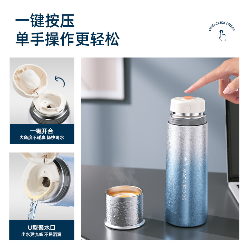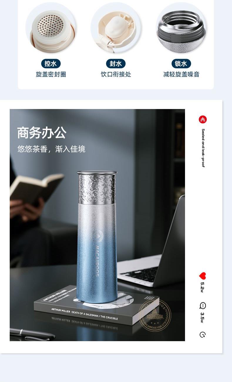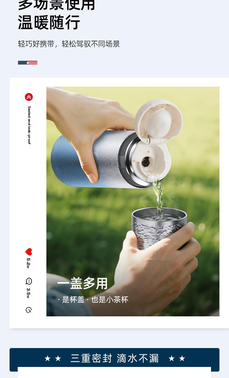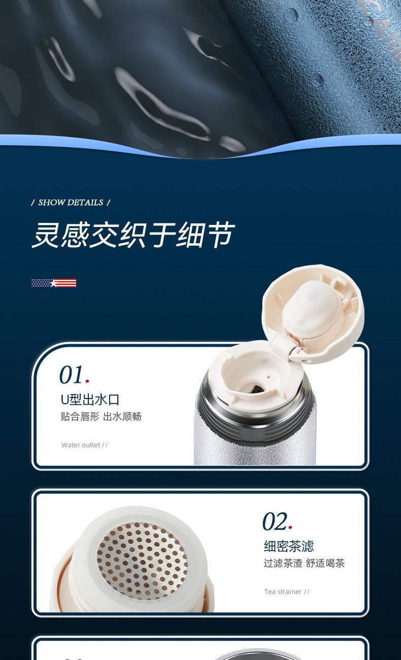 规 格:500ml 材 质:316不锈钢 产品净重:0.32kg 产品毛重:0.37kg 整箱重量:16.1kg 材质内壁采用316不锈钢,304滤网,材质安全; 真空保温双层真空杯体,冷热两用,锁住温度,长效保温; 密封性能硅胶密封防漏杯盖,密封性好,防滴漏不漏水; 携带方便杯身冰花工艺,办公、户外使用方便,随拿随走。
