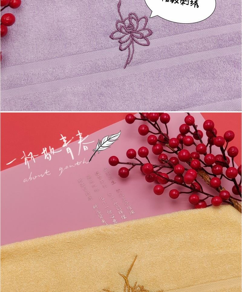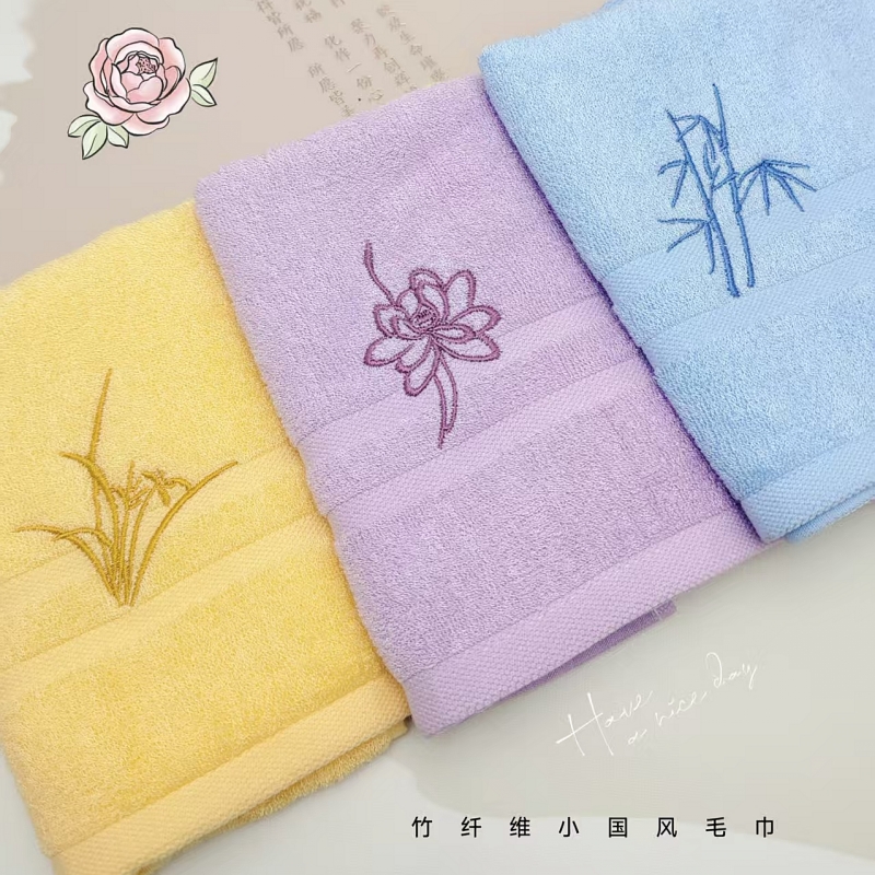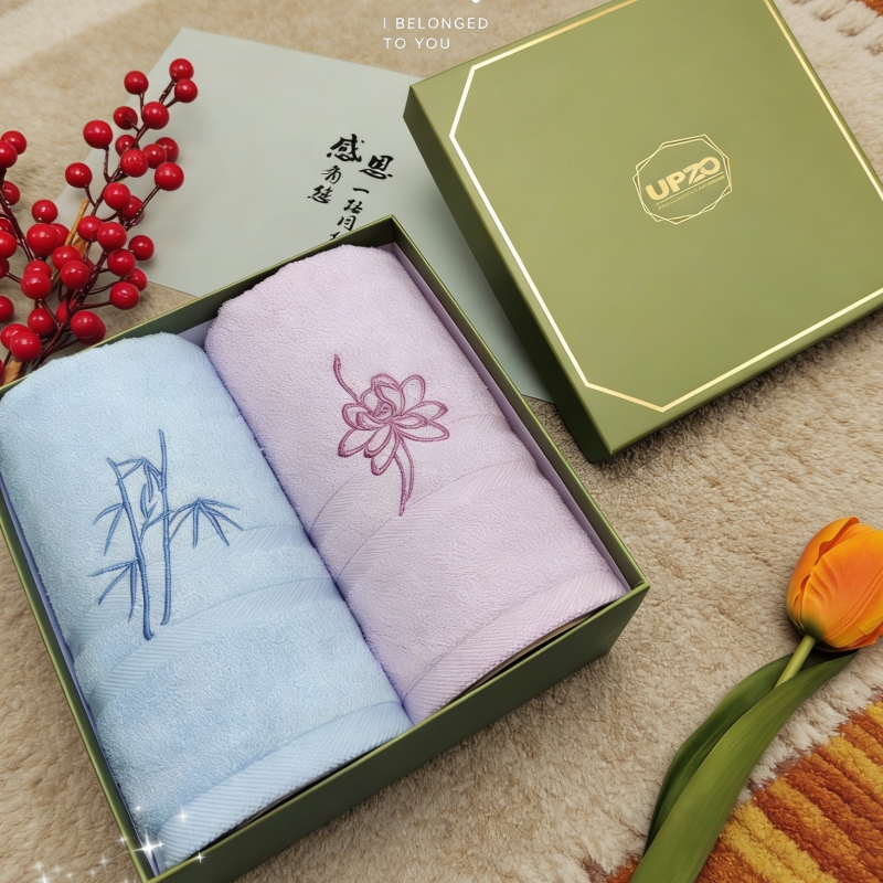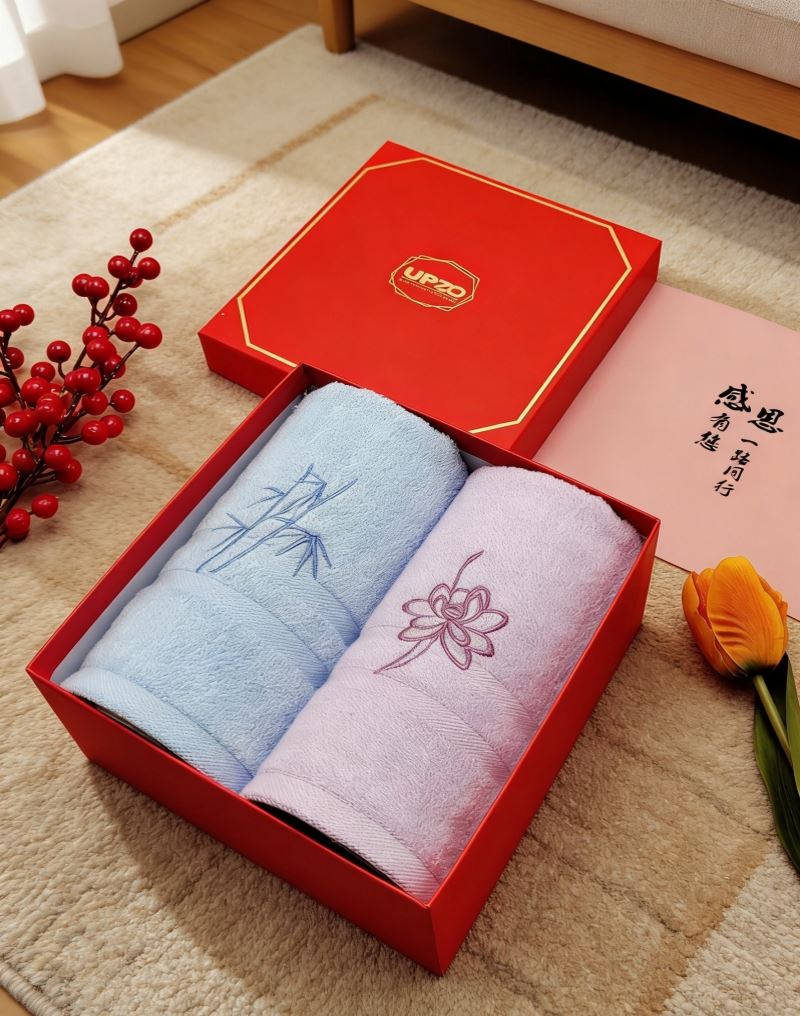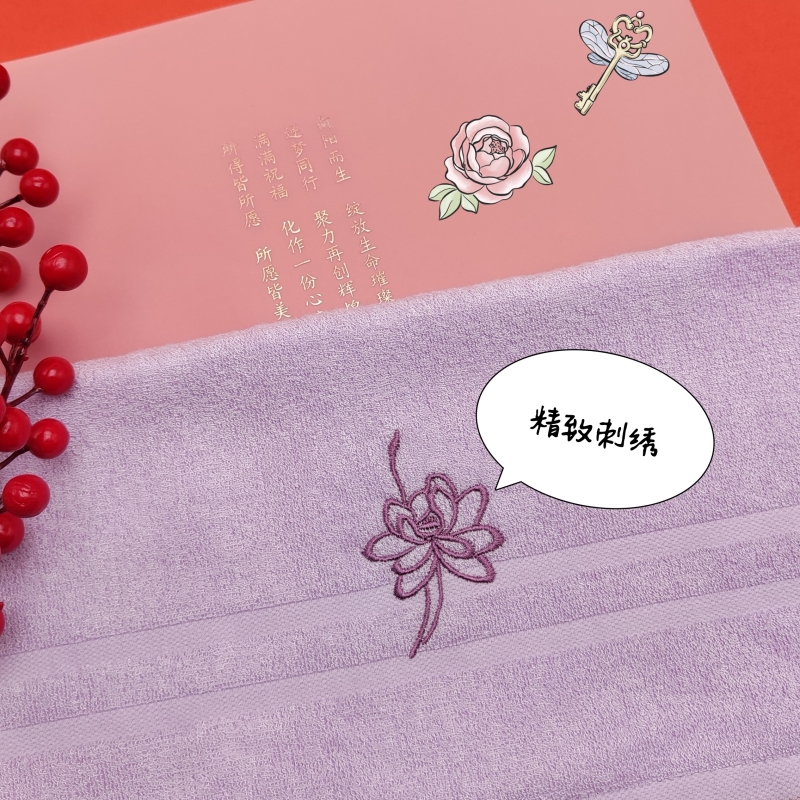 型号: XGF-012 产品内容 竹纤维小国风大毛巾×2 92克 34*72CM (包含国风刺绣) 成份:起圈部竹纤维 基部棉 外盒:20×20×9.5cm 精选竹纤维材质 结合国风刺绣 优质好礼