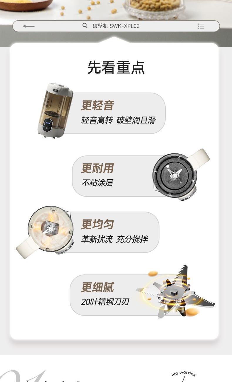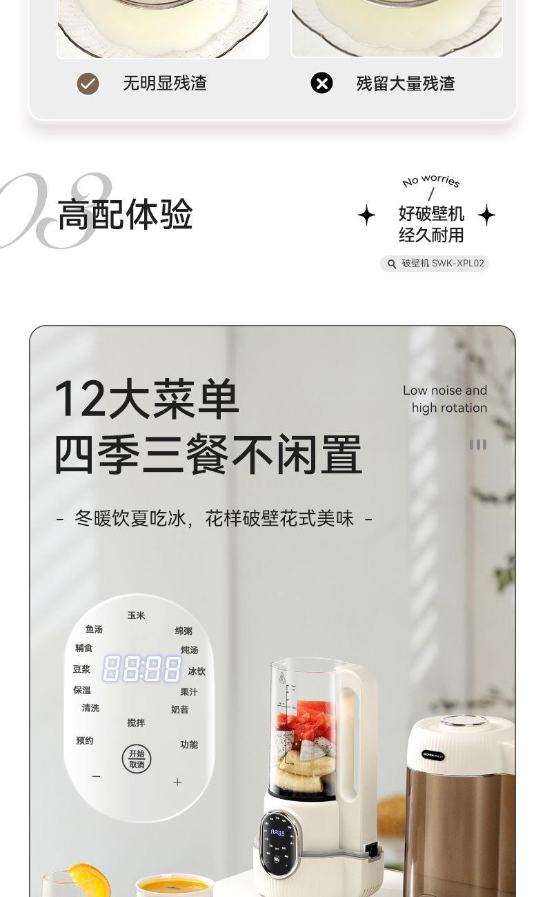 一键触控,带预约功能,具有豆浆,辅食,果汁等多种功能,满足日常需求