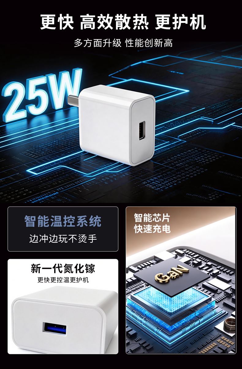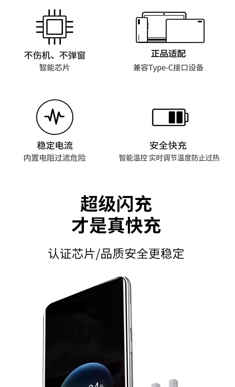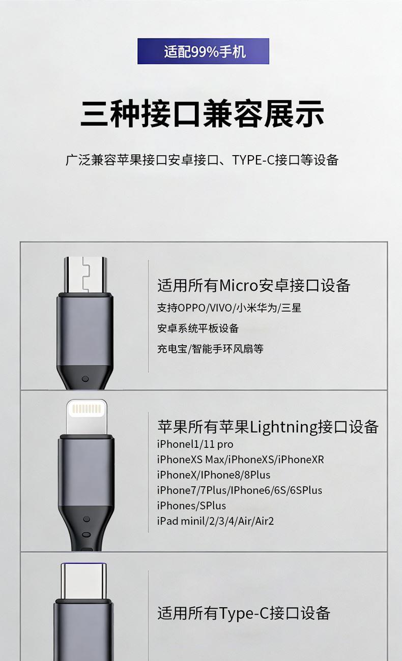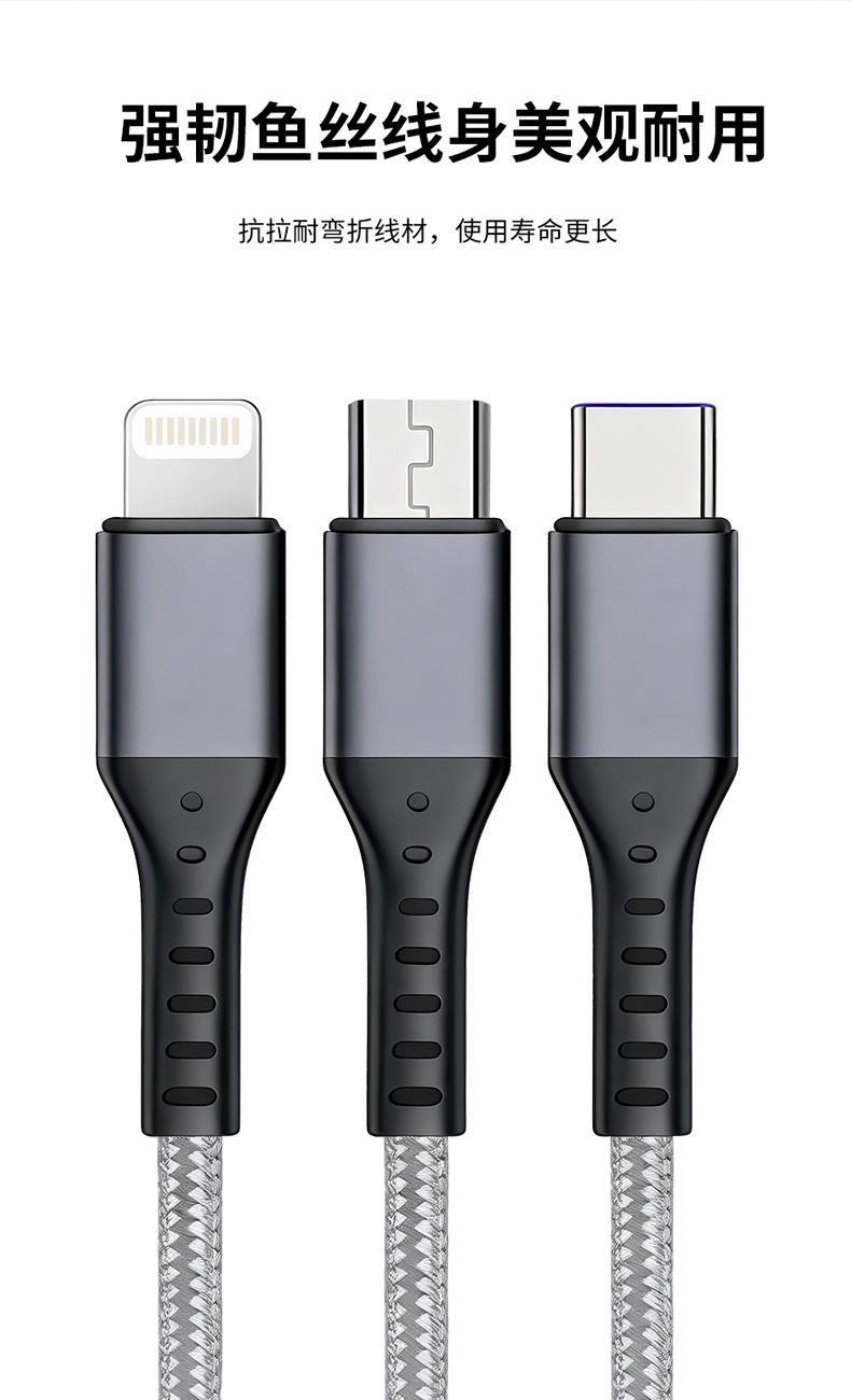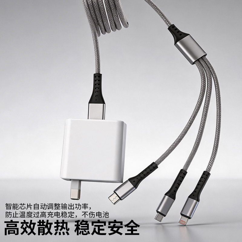 充电器: 25W全协议超级快充,输入:200V~50/60Hz 0.6A Max,智能芯片输出:5V=3A/9V=2.77A/12V=2.08A,安全新升级新国标插脚,3C认证安全可靠。 100W快充一拖三充电线: 一拖三快充充电线 30*2+10*2 0.1复合铜, type-C支持快充100W,尼龙编织材质、耐拉耐折,易收纳,携带方便,适用于苹果,安卓type-C线长1.2米,适用范围:适用于市面上所有常见手机。