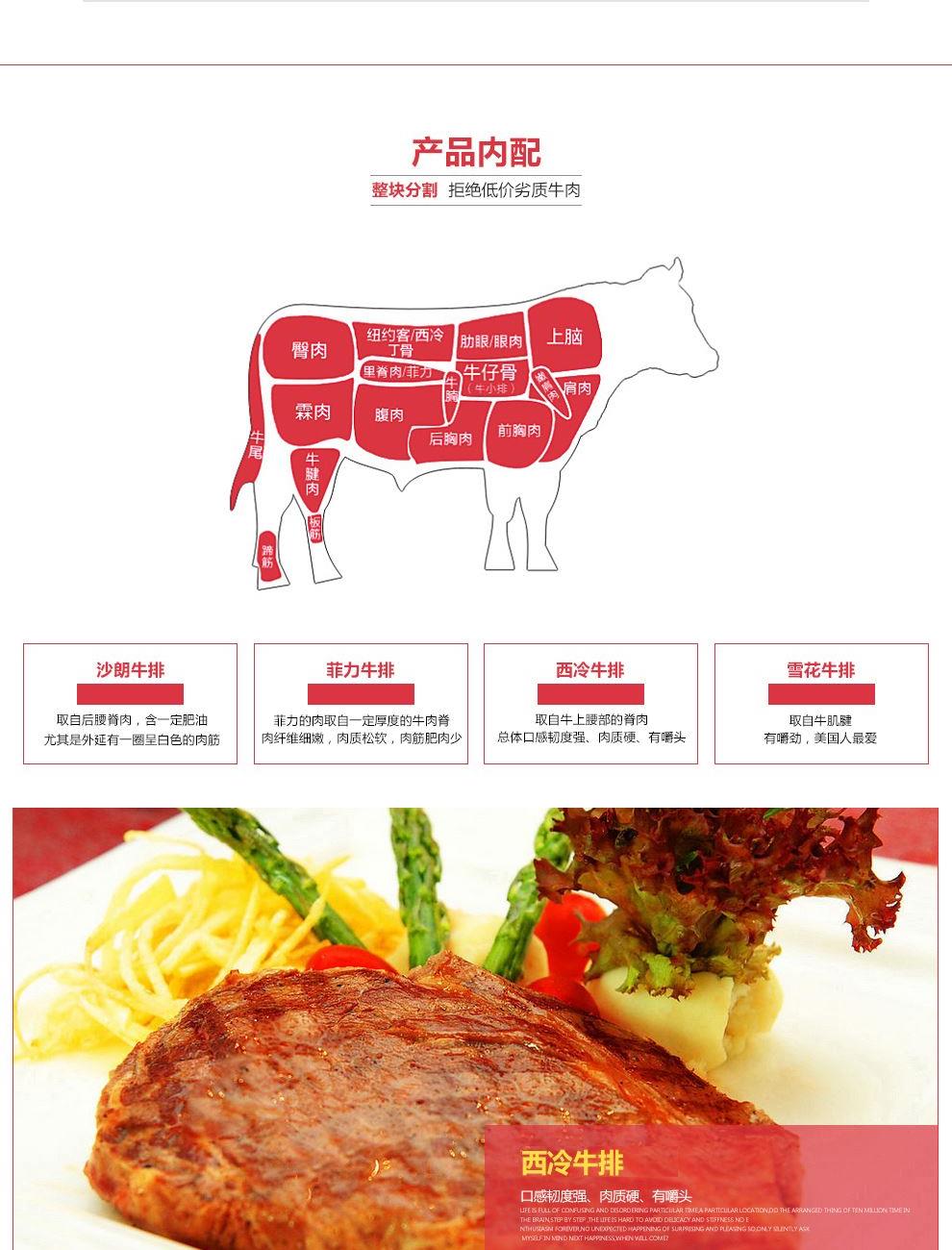 内配: 西冷牛排180g/袋*1袋 嫩肩牛排150g/袋*4袋 赠品:酱料包、黄油、保温冰袋