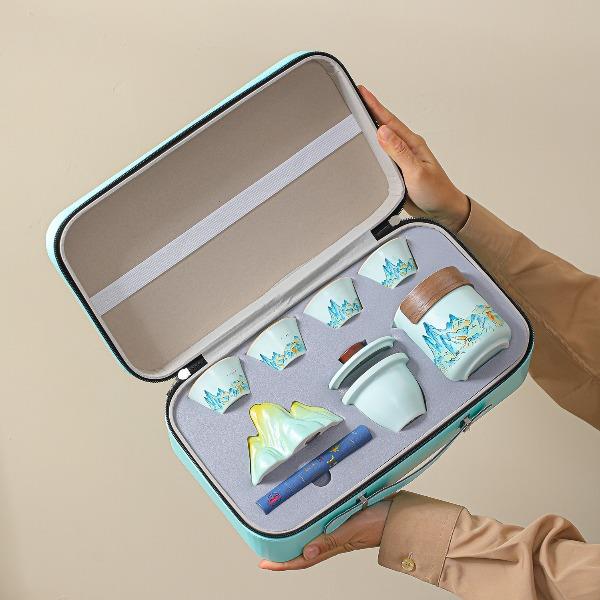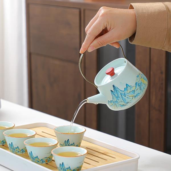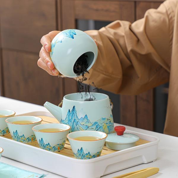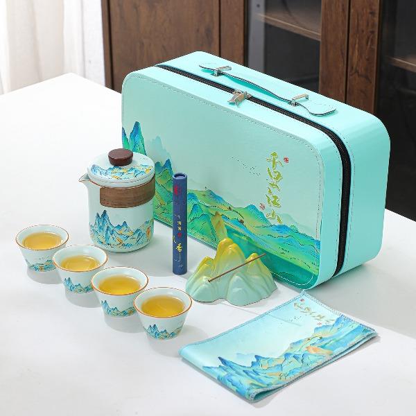瓷语花香千里江山汝窑香插茶具套装
