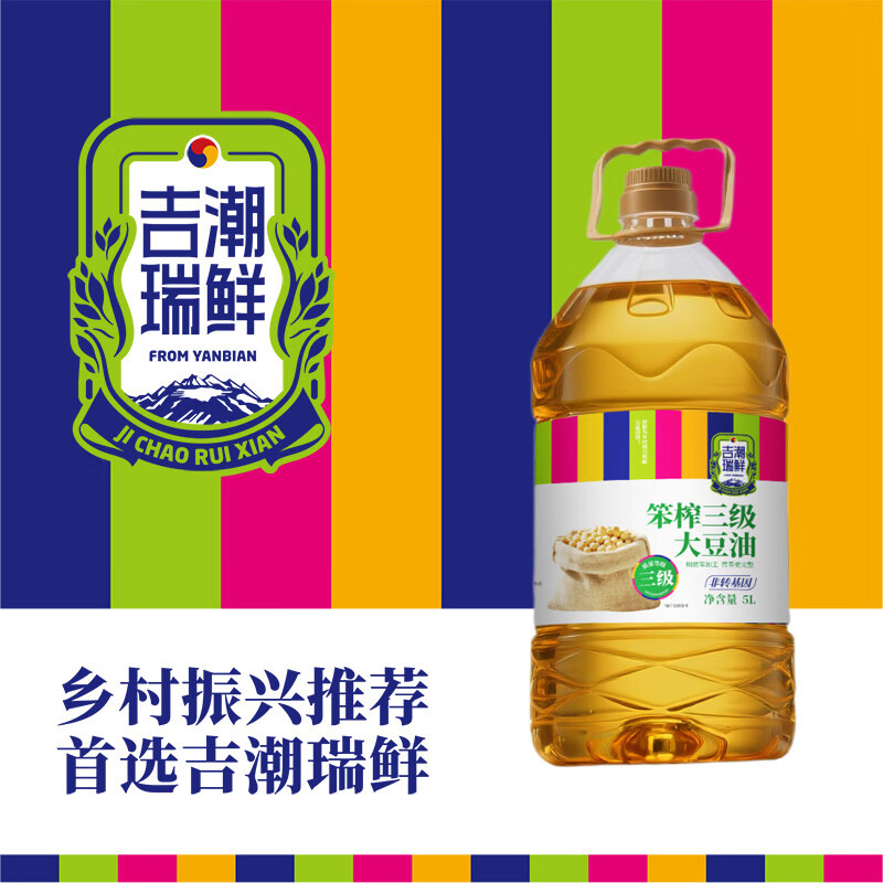 吉潮瑞鲜笨榨三级大豆油(非转基)5L