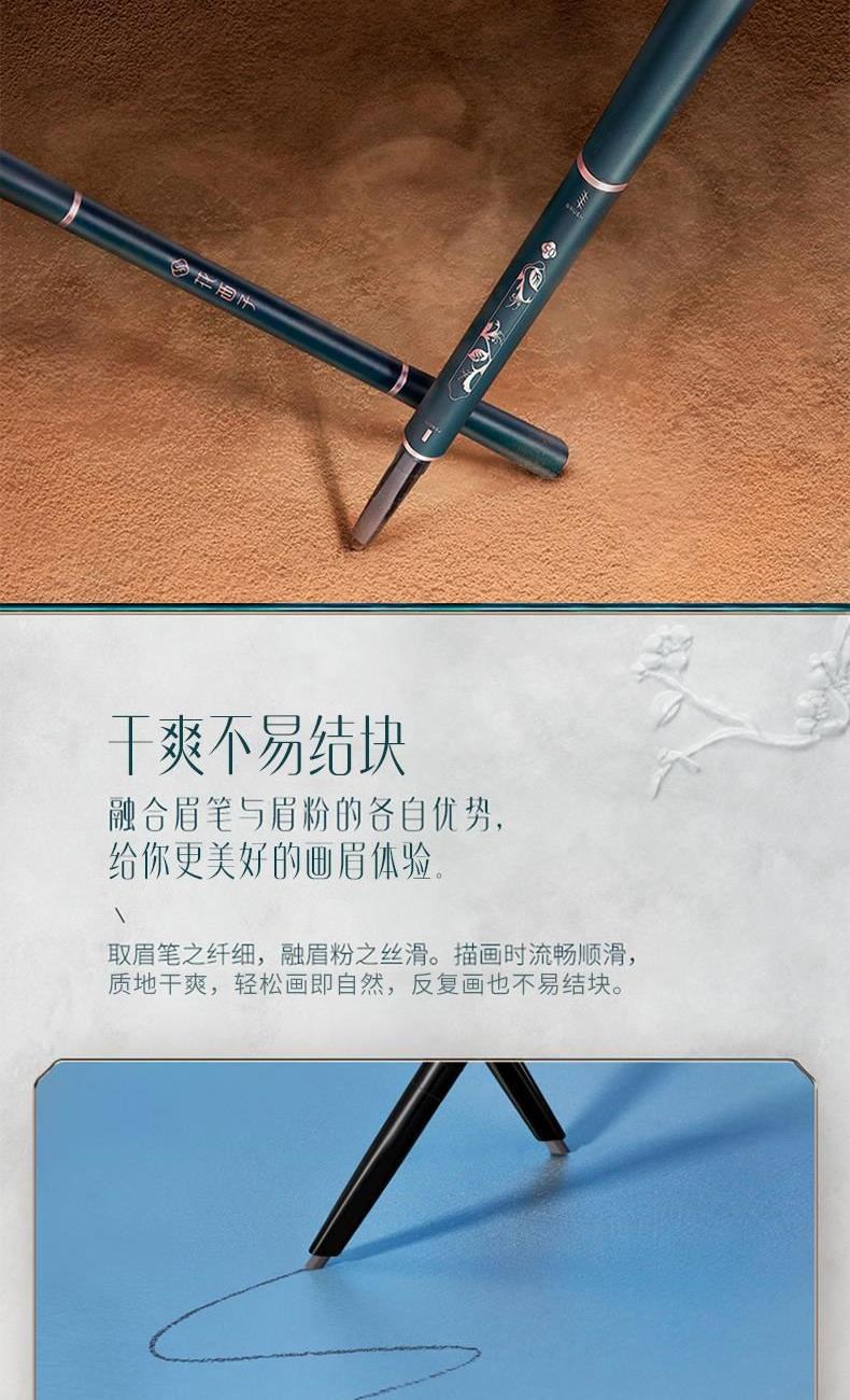 规格:0.08g*3 卖点: 1.取“笔”之长 笔触丝滑:20吨重力压粉制笔,干爽顺滑,画不易结块; 2.如“粉”细腻 匀色白然:6道工序精细研磨,填色层次绒雾感。