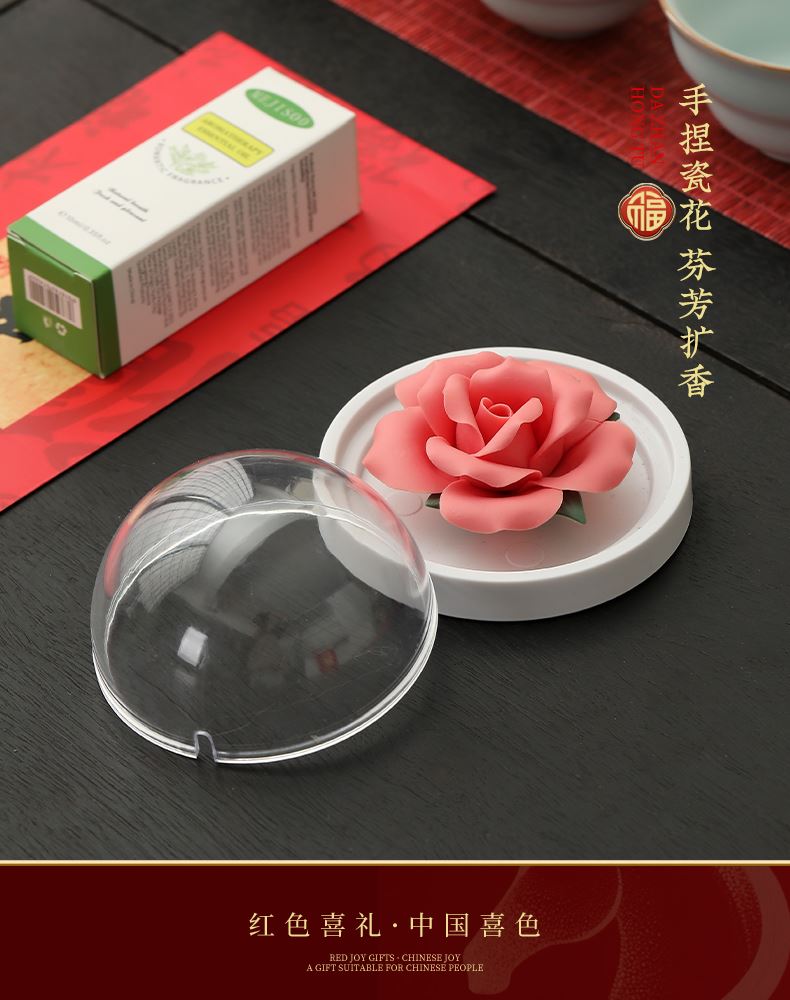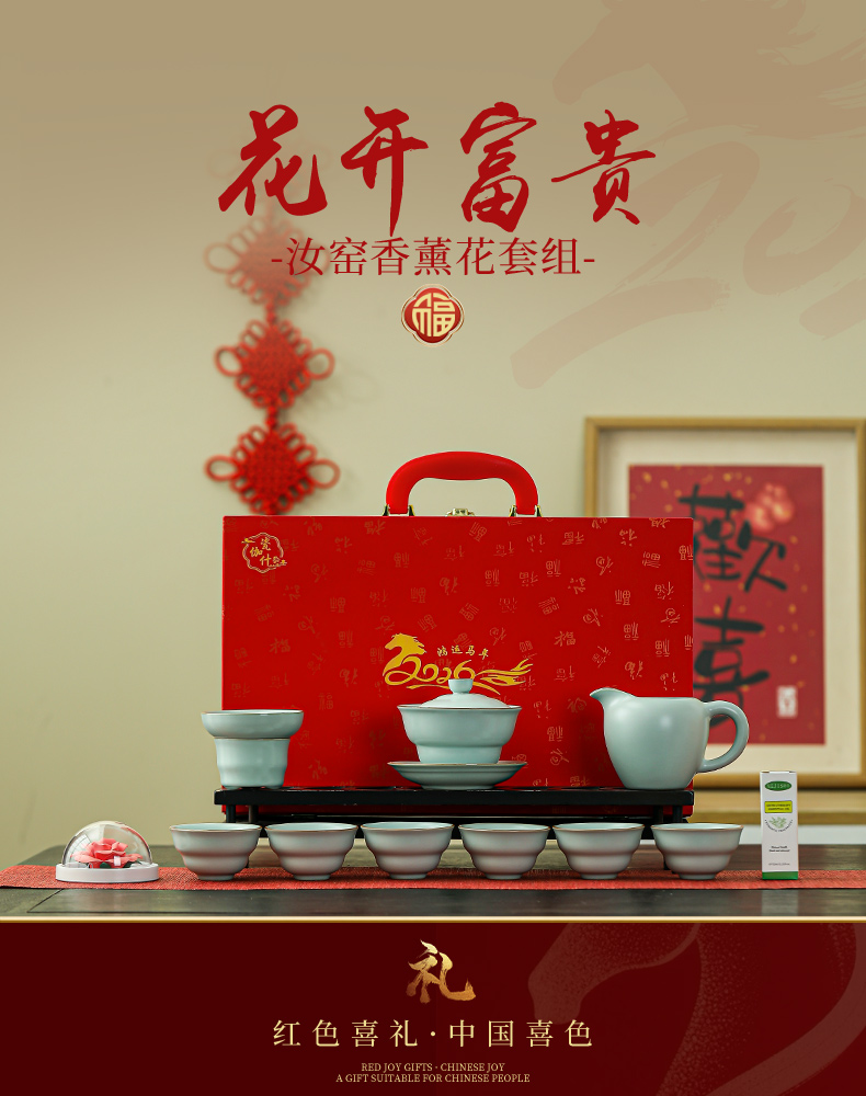盖碗1:10cm*8.8cm 容量180ml 茶海1:13cm*8cm容量210ml 茶杯6:7.2cm*4cm 容量65ml 茶漏:直径8cm 高6.3cm 非遗手捏香薰花1:6cm*3cm 精油1:10ml 严选泥料经数十道工序,三次施釉,两道窑烧,大器天成 玛瑙入釉,蕴润柔和,如脂似玉,肥厚莹润。 茶具葫芦造型,“福禄”相伴,寓意吉祥。 非遗手捏瓷花,栩栩如生,搭配精油,摆件、香薰两用。 多场景需求搭配、应景红色喜庆礼盒,送礼佳选。