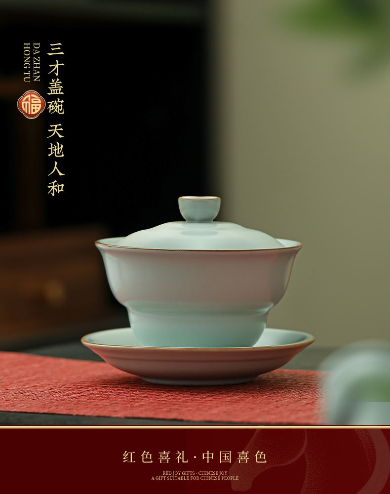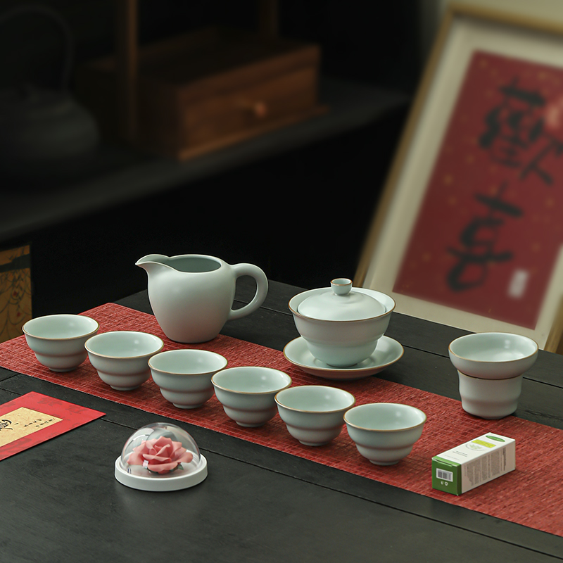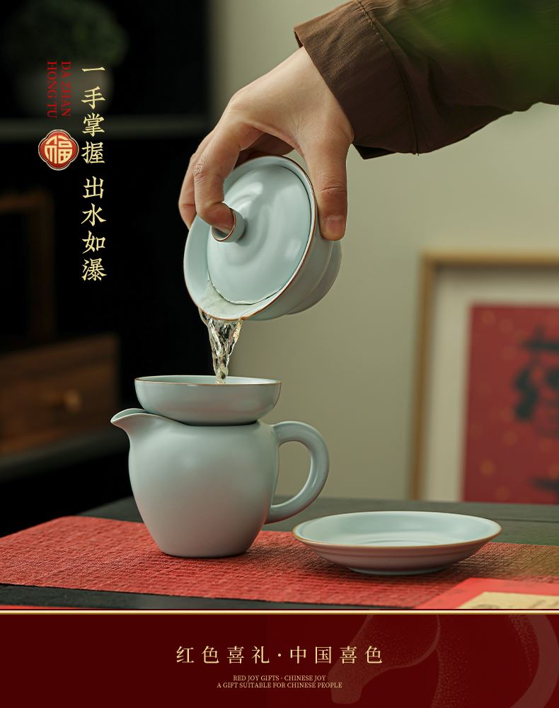 瓷伽什花开富贵汝窑茶具套组
