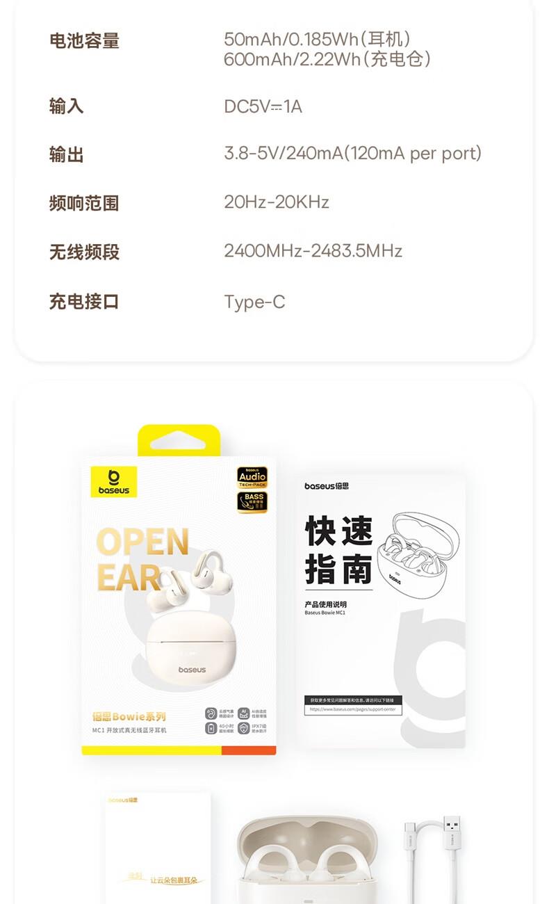 倍思Bowie系列MC1开放式真无线蓝牙耳机 倍思Bowie系列MC1开放式真无线蓝牙耳机