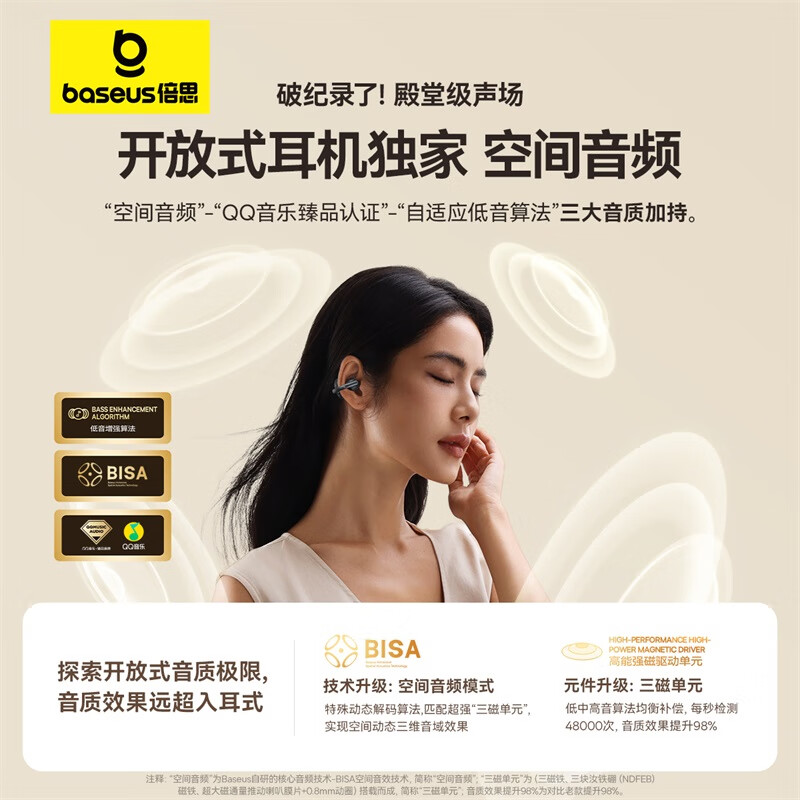 倍思Bowie系列MC1开放式真无线蓝牙耳机 礼品已成功加入PPT!