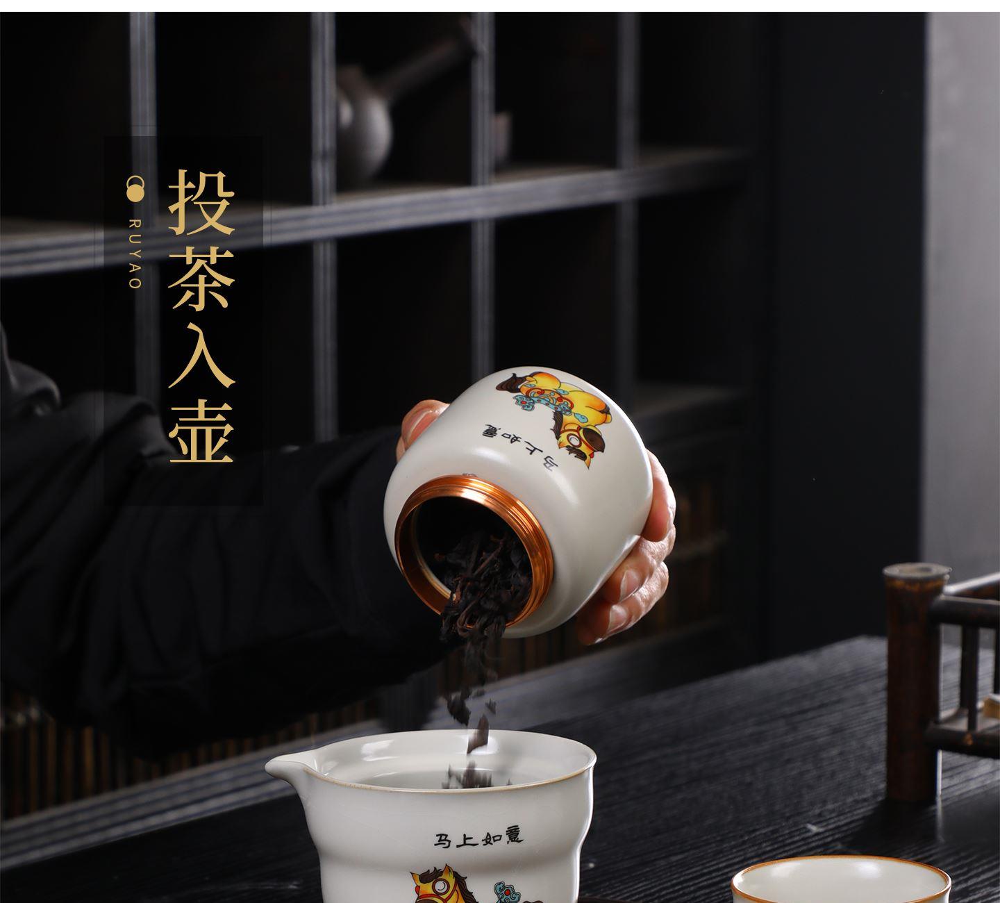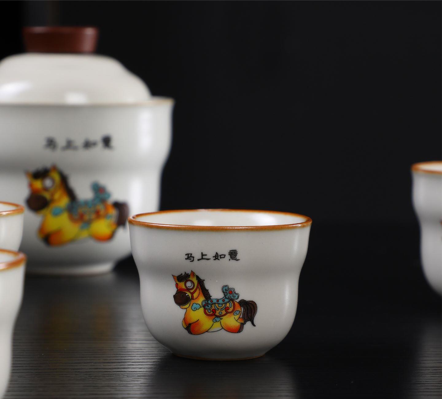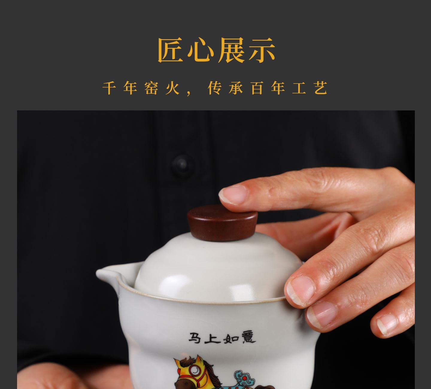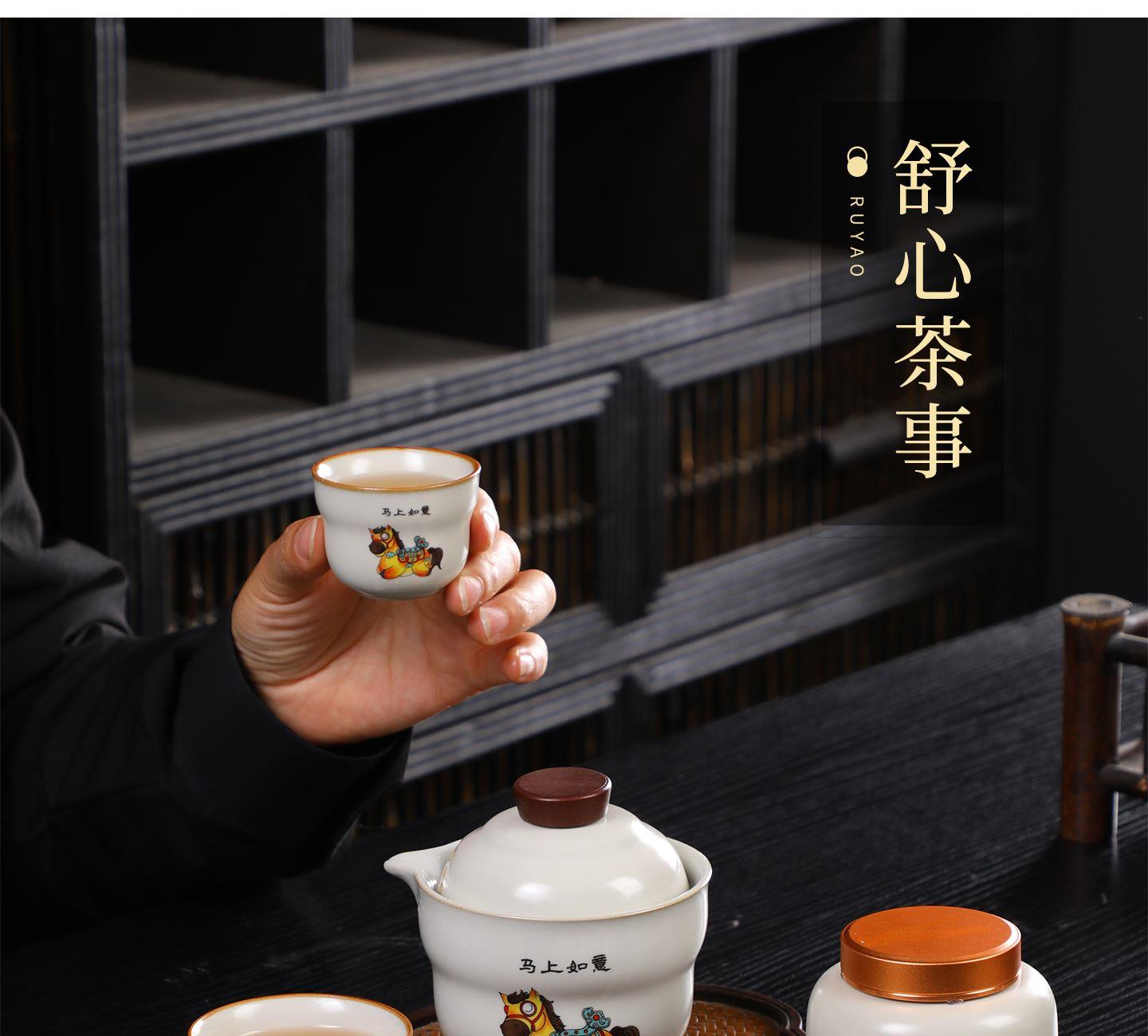 瓷语花香开门红马上如意汝窑茶具套装
