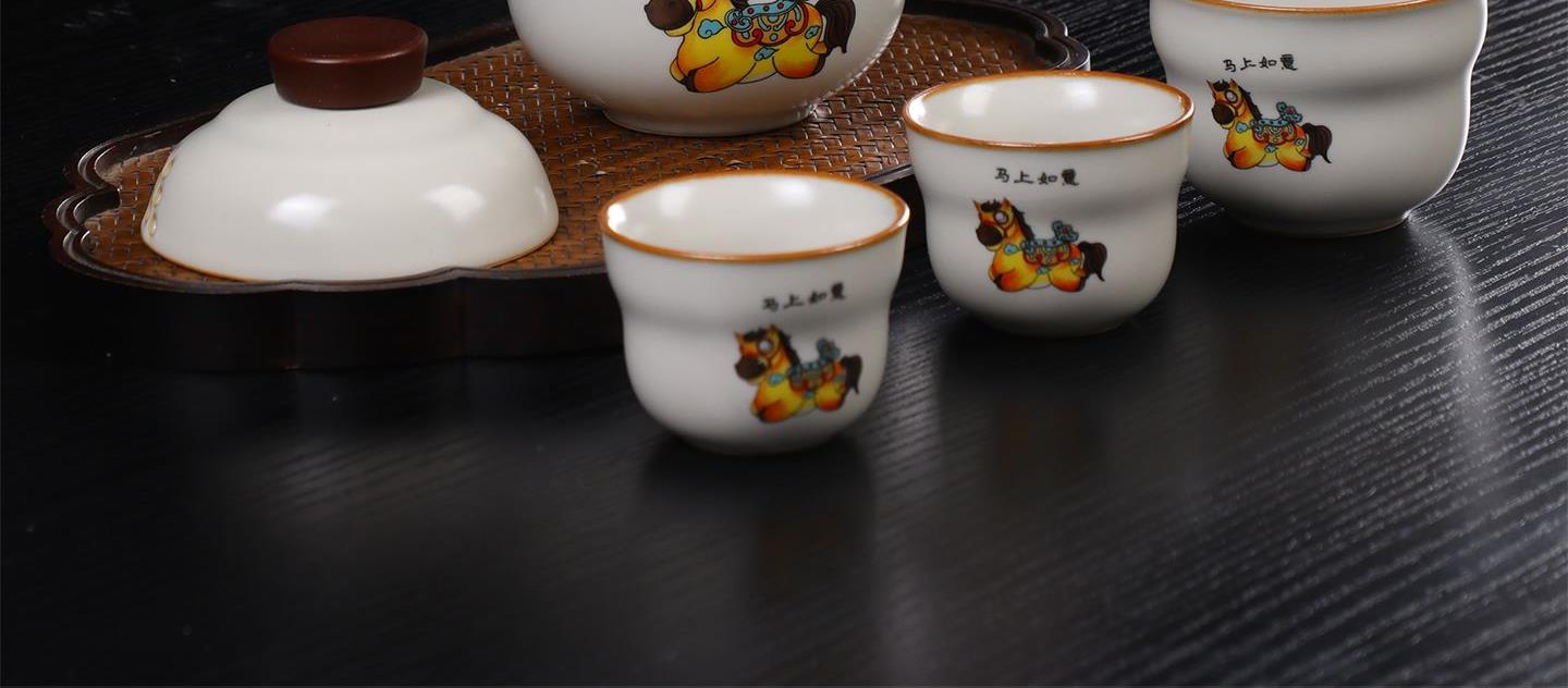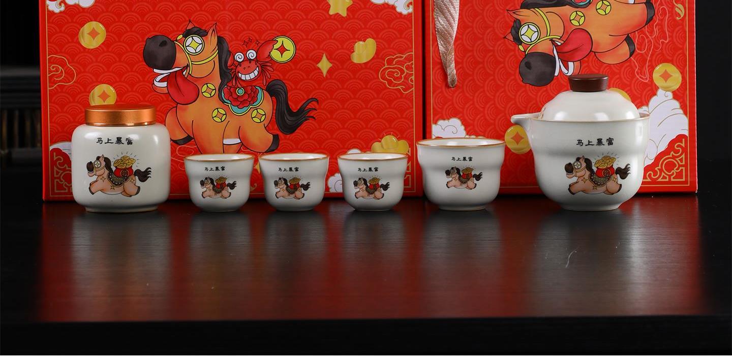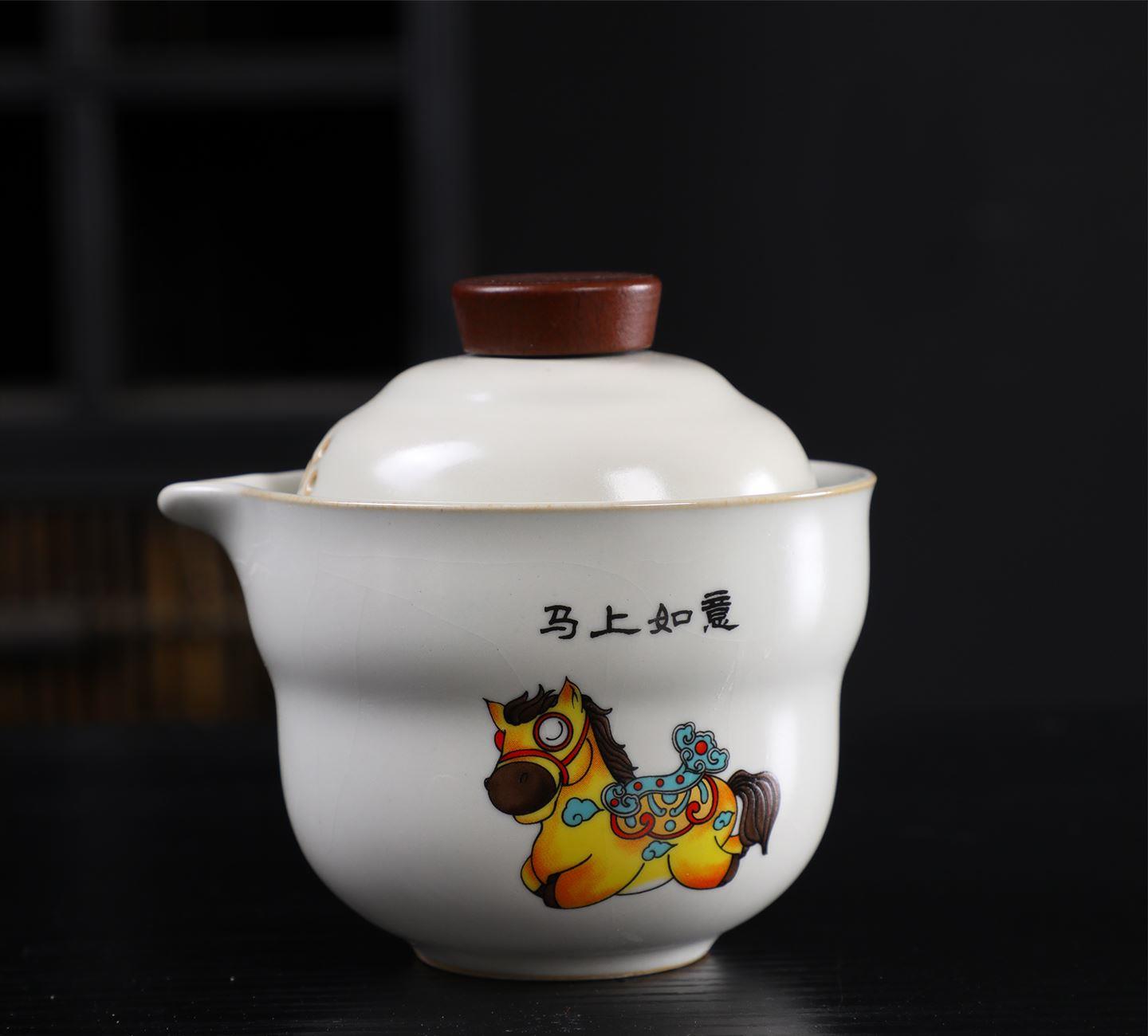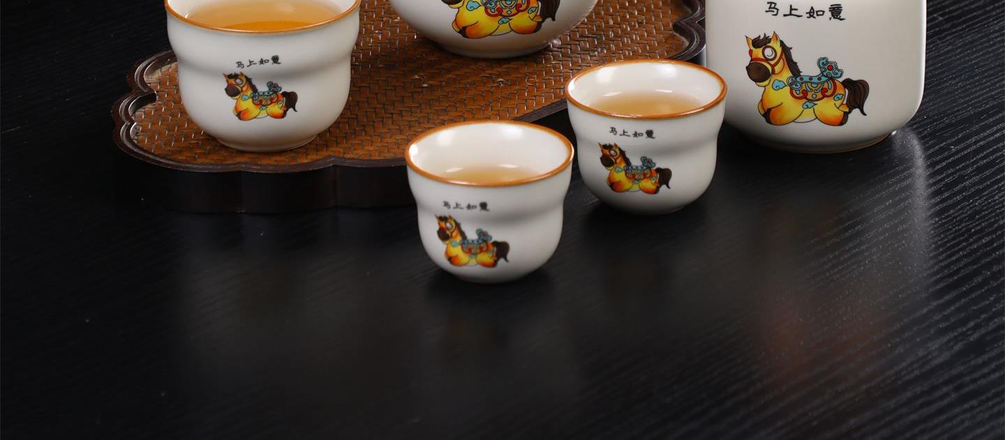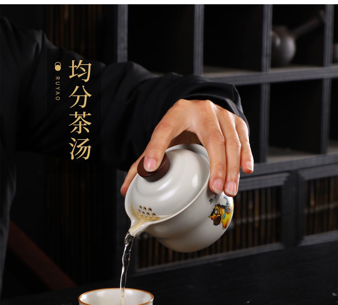 瓷语花香开门红马上如意汝窑茶具套装