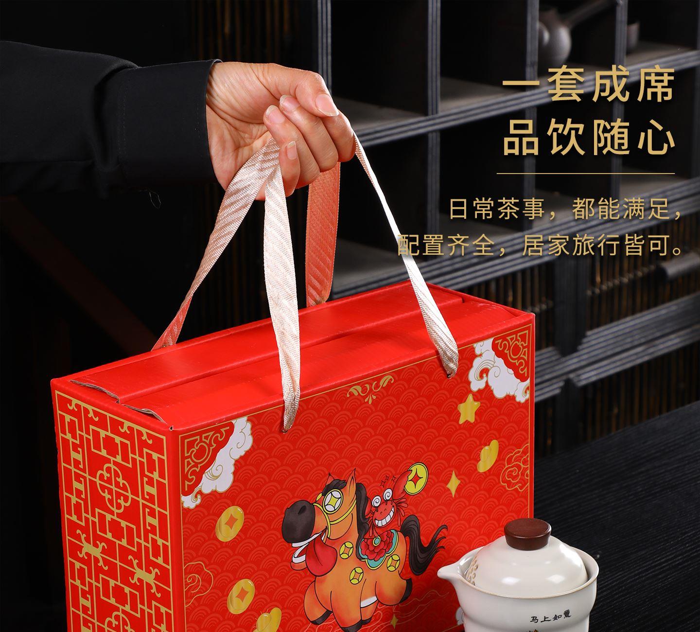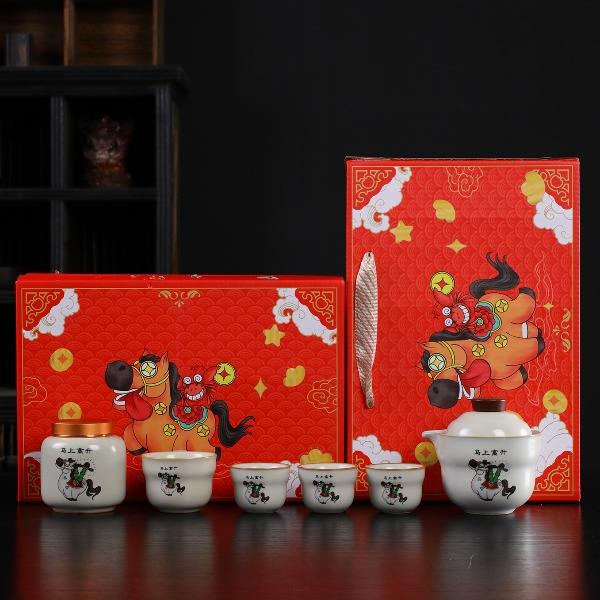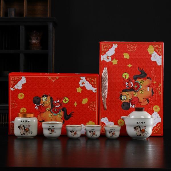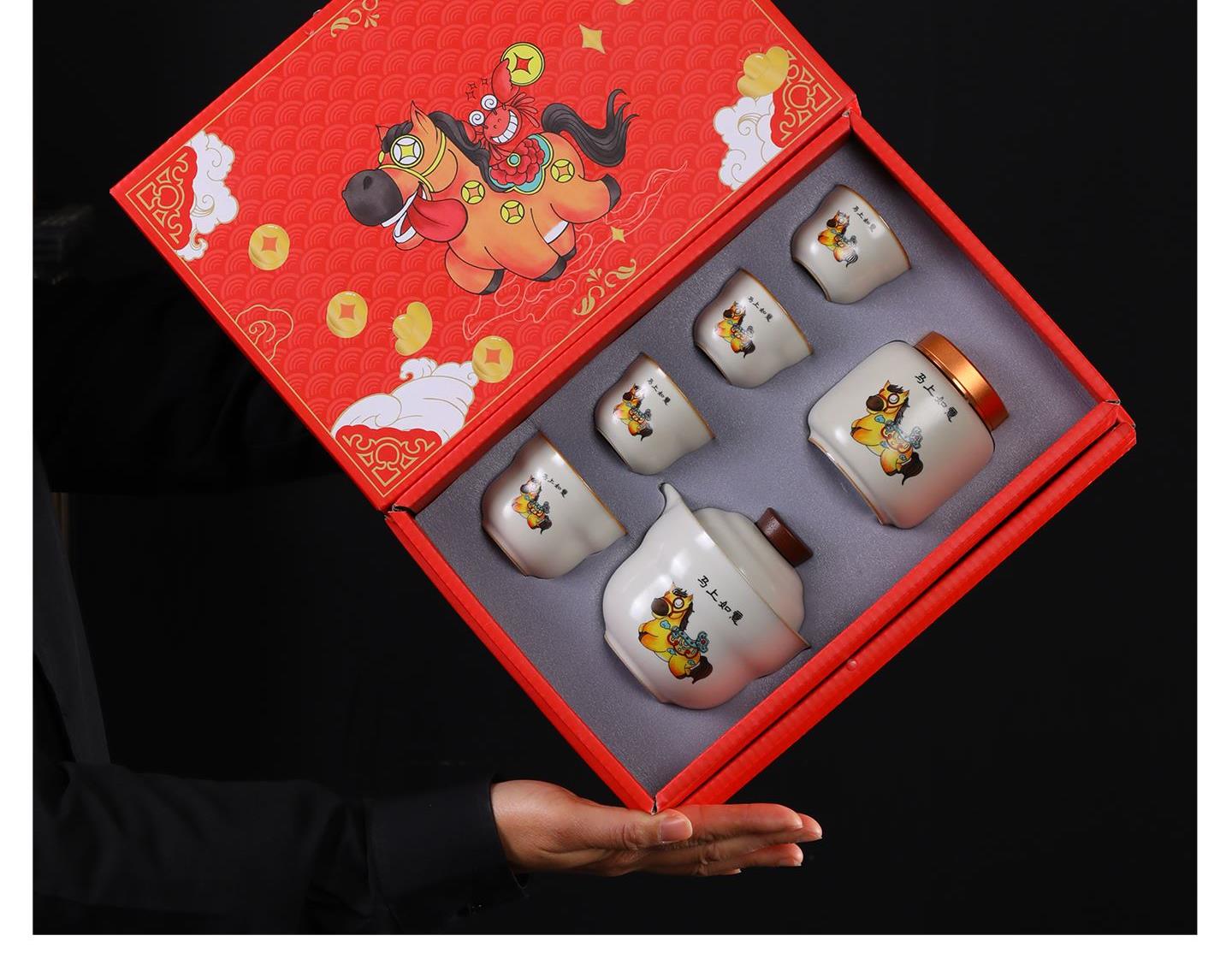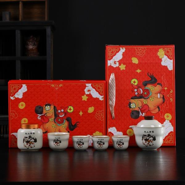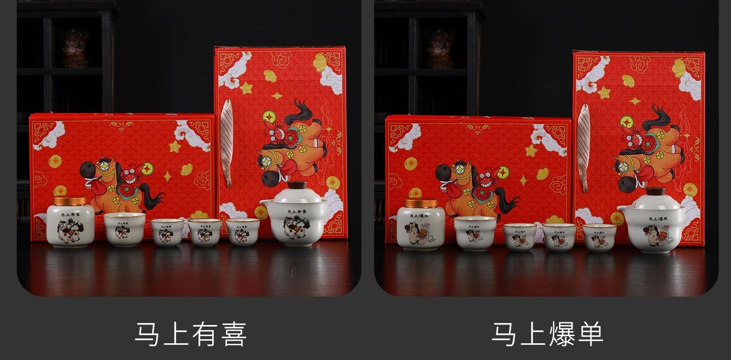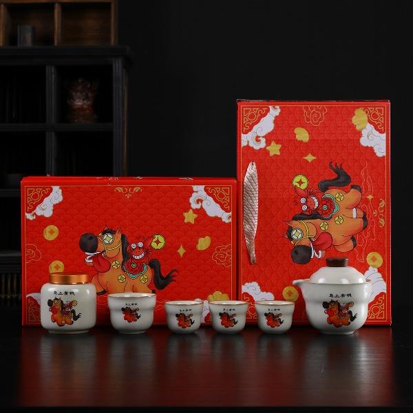 瓷语花香开门红马上如意汝窑茶具套装