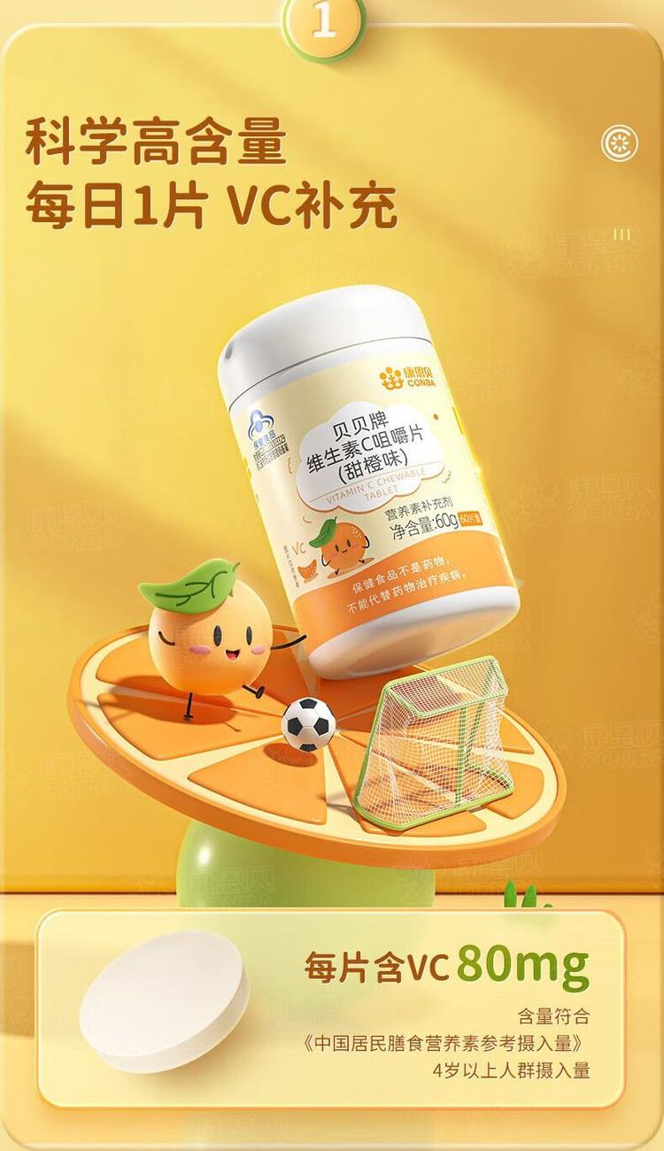 成人VC100片+儿童VC60片 香橙味+甜橙味 高含量 每片VC含量228mg 三种口味 营养相伴 酸甜自在 随心选择