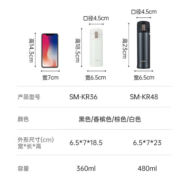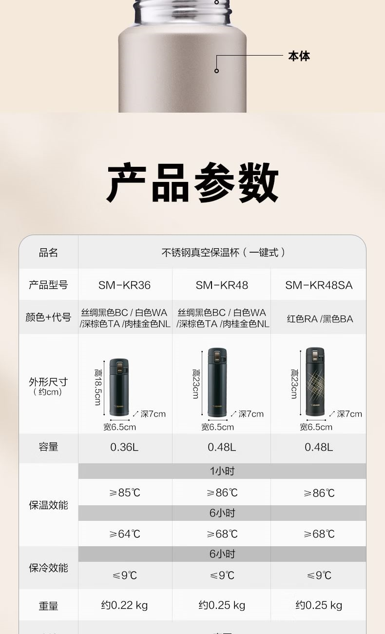 象印保温杯SM-KR48弹盖杯