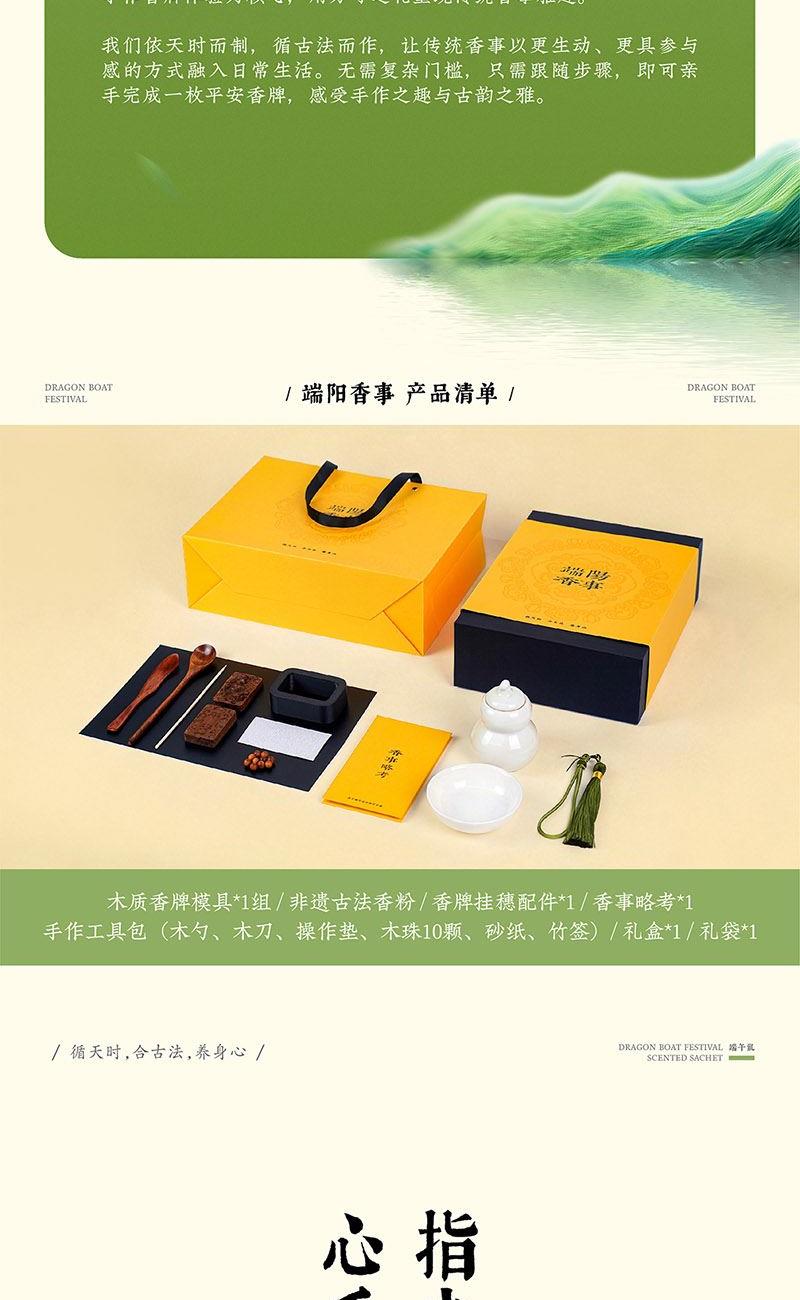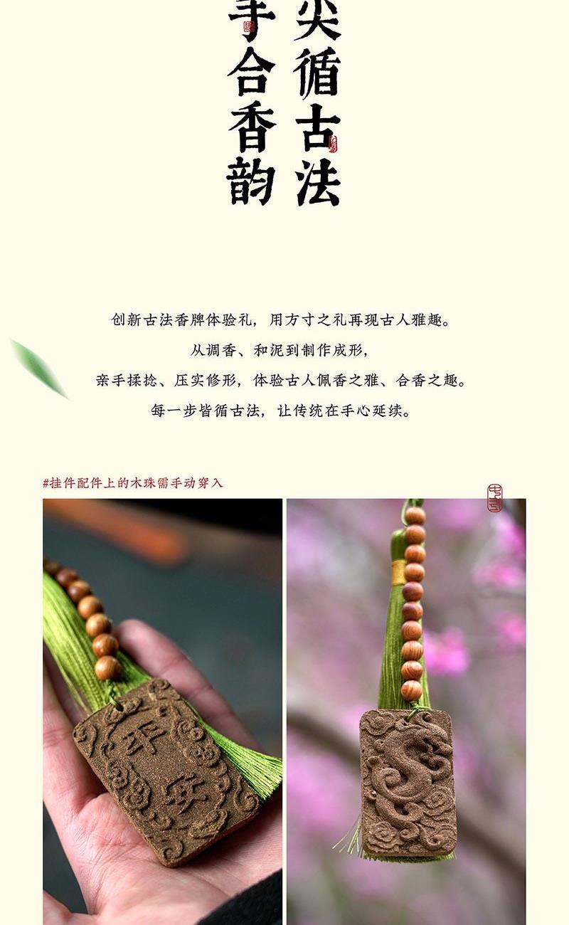 五月初五,仲夏端阳,草木清香萦绕人间。自古端午便有佩香悬艾的习俗,人们以香驱暑避秽,也将平安顺遂的祈愿寄托于一缕幽香之中。「端阳香事」融合古法合香技艺,以手作香牌体验为核心,用方寸之礼重现传统香事雅趣。我们依天时而制,循古法而作,让传统香事以更生动、更具参与感的方式融入日常生活。无需复杂门槛,只需跟随步骤,即可亲手完成一枚平安香牌,感受手作之趣与古韵之雅。