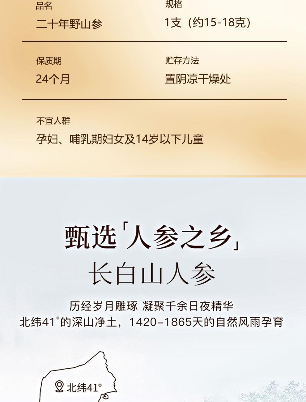 净含量:1支 保质期:2年 礼盒尺寸:800*350*80mm 野山参长白山15年老参王一盒装煲汤补品泡酒