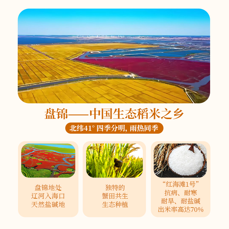 4、优质米种:“红海滩一号”(锦稻109)辽宁首批“辽宁优品”口感独特,营养丰富