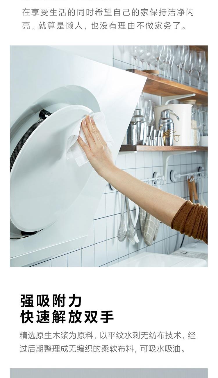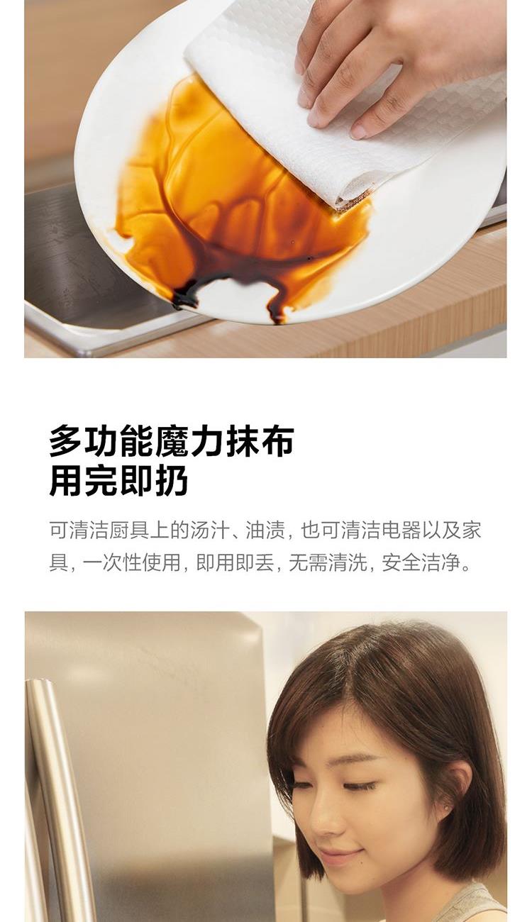 产品货号:85760 产品规格:200mm*250mm/节 主要原料:水刺无纺布 保质期:3年 产品卖点: 1、吸水吸油,干湿两用 2、柔韧不掉屑,安全洁净 3、特色压花设计,增加布面摩擦力,除尘效果加倍 多功能魔力抹布,用完即扔