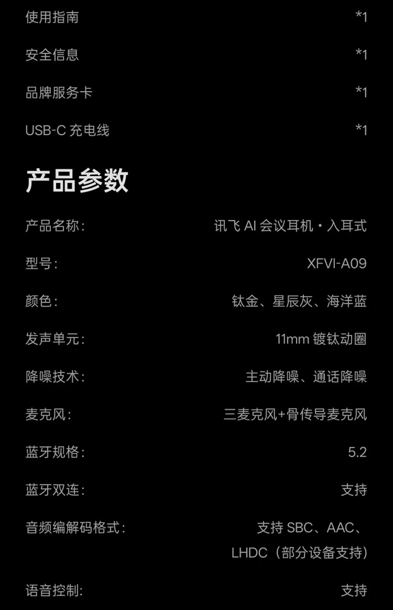 科大讯飞录音降噪会议耳机IFLYBUDSPro3