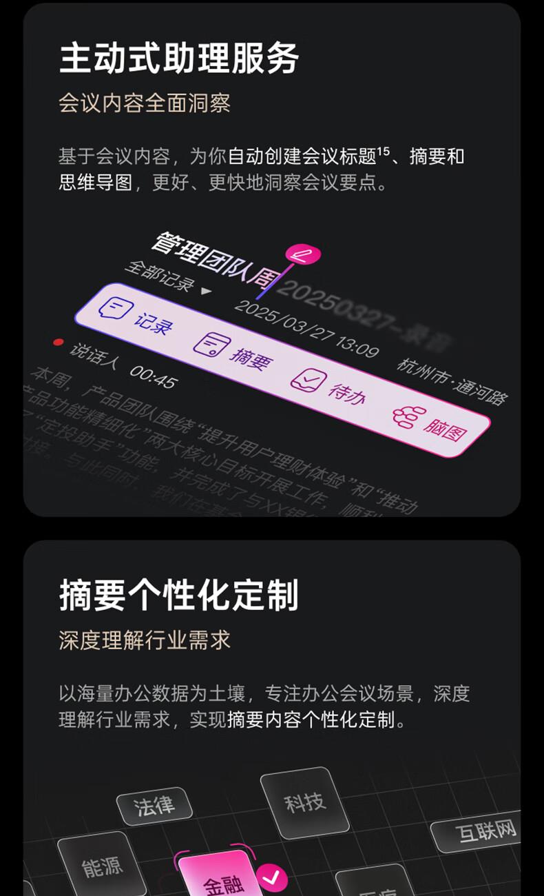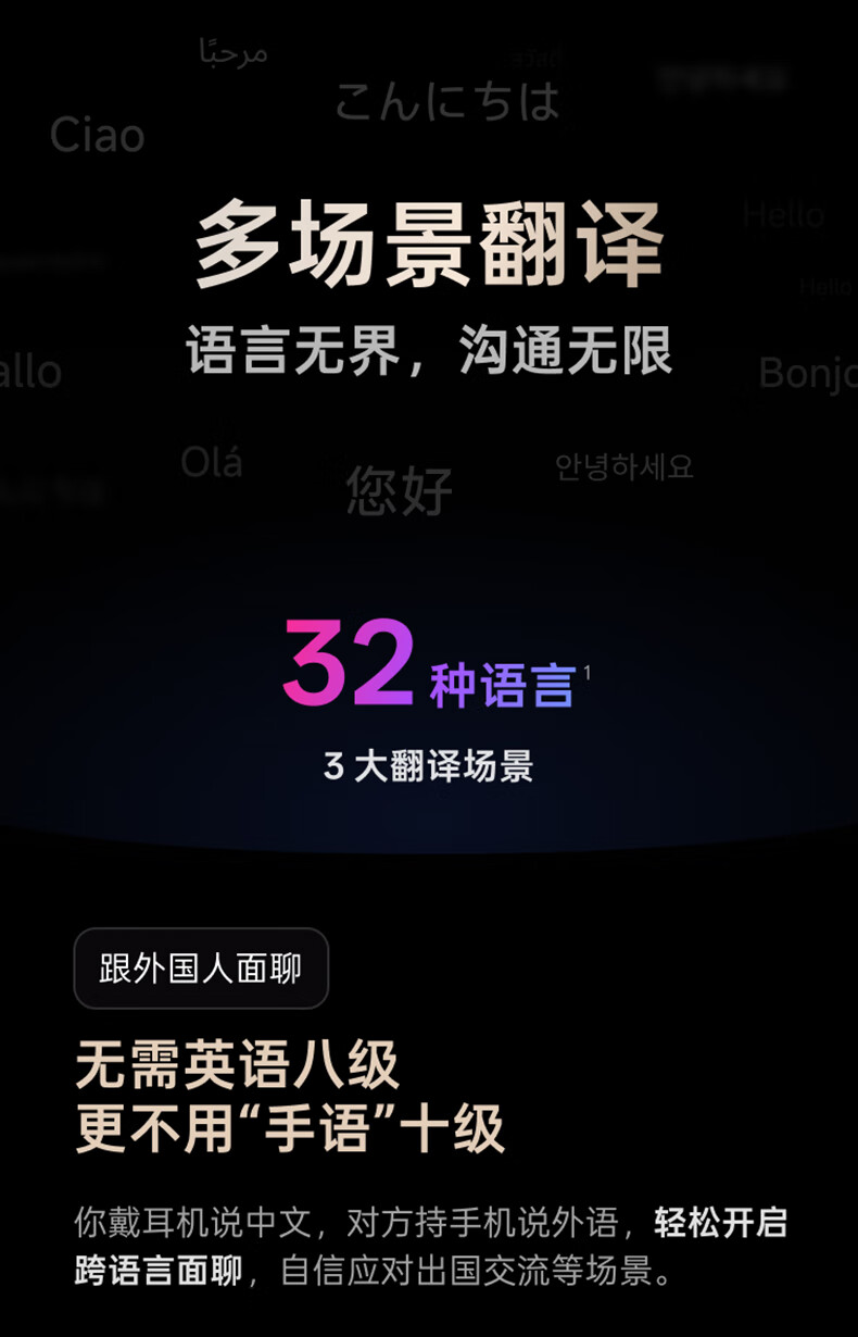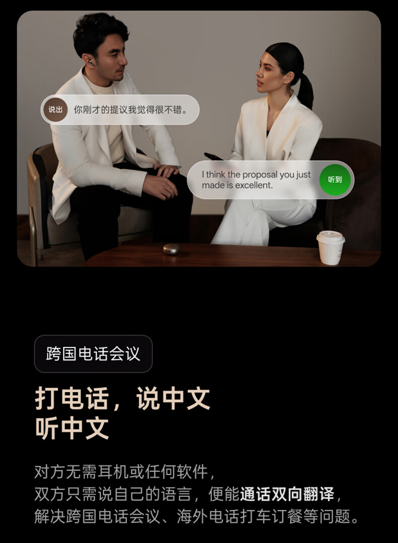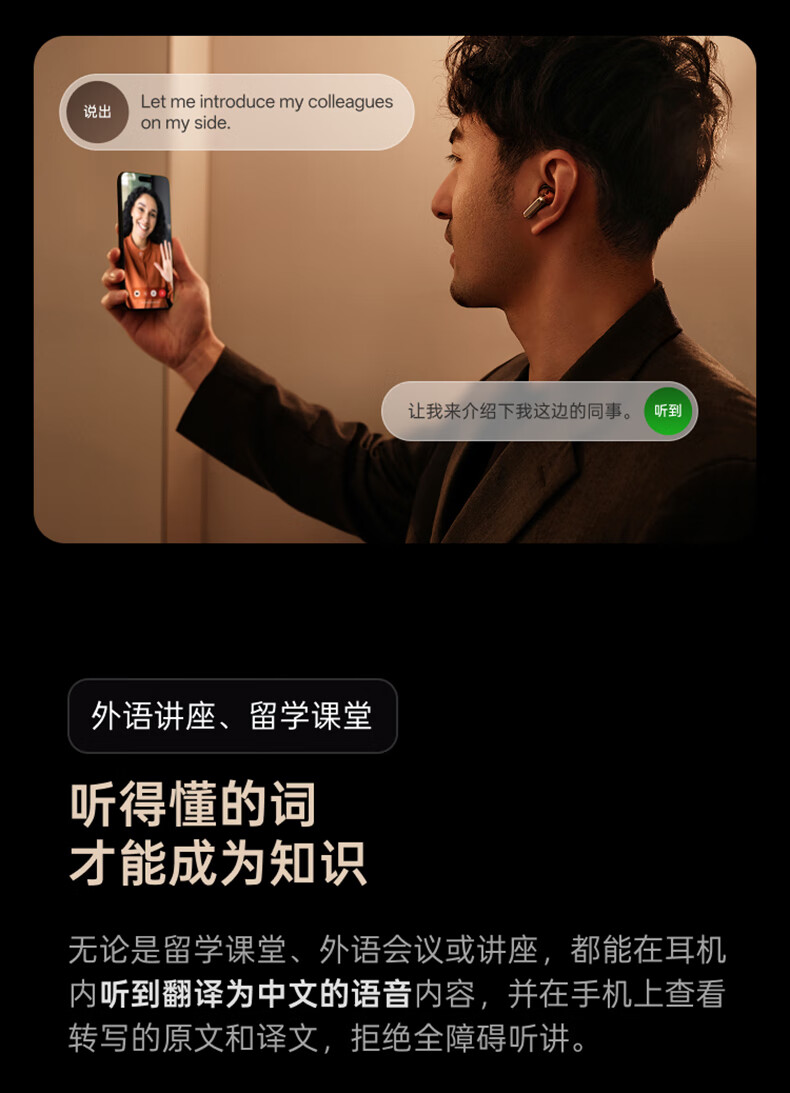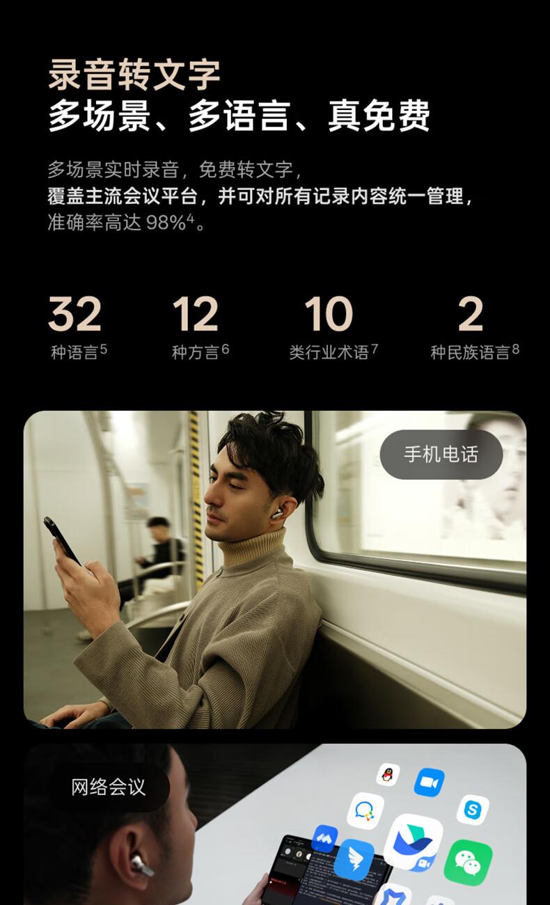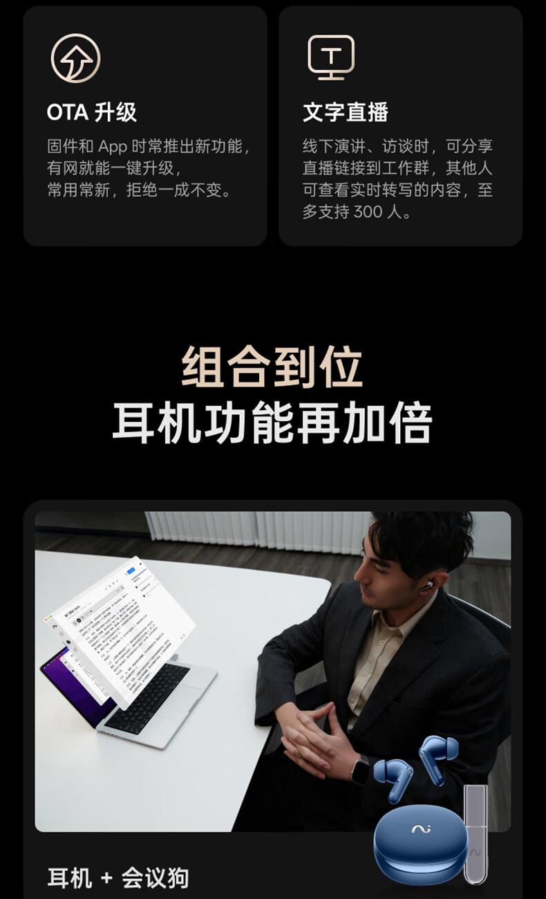1、大师调音,殿堂音质:爱乐乐团联合调音,Hi-res金biao音质认证,支持LHDC高清音频解码 2、语音控制2.0:新增降噪切换、录音语音控制,搭载viaim Al与DeepSeek-R1双模型,支持脑图、离线翻译等功能 3、全镜面感耳机机身,充电仓轻薄便携 4、12000分钟云空间(其中6000分钟为2年有效) 5、面对面翻译,耳机方无需操作耳机