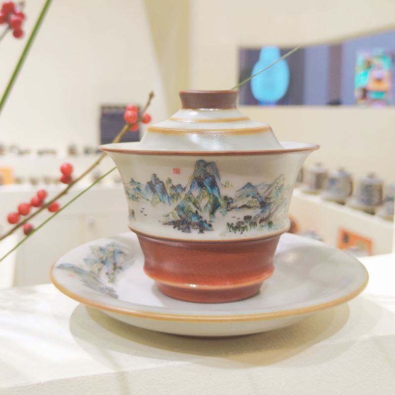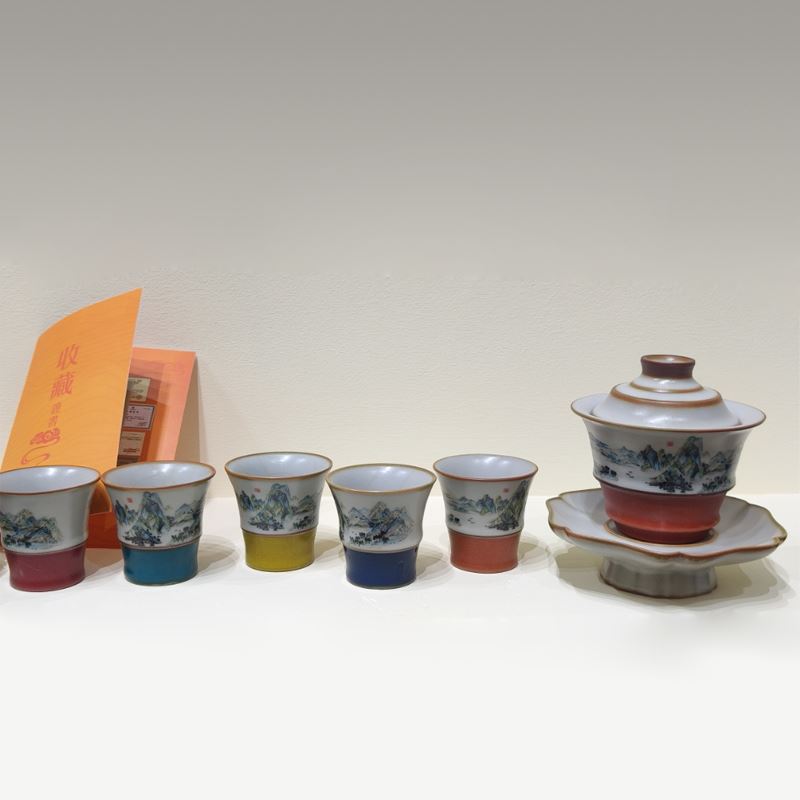 鹏翼节节高千里江山汝窑茶具套装配收藏证书