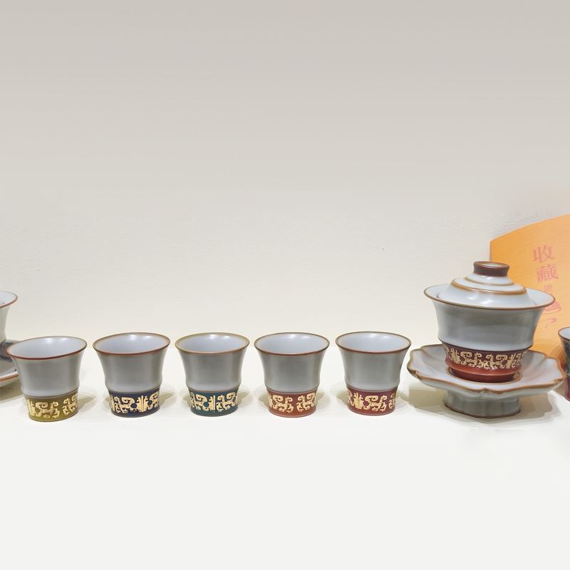 配制:1盖碗 6杯 1壶承 1收藏证书1礼箱 材质:亚黄汝瓷 推荐说明:玛瑙入釉,蝉翼开片,家有千财万贯,不如汝窑一片。亚黄汝瓷,技术新品,采用高价优质瓷土,紫口铁足,瓷质上乘。立体浮雕杯身。杯身开片,可养瓷